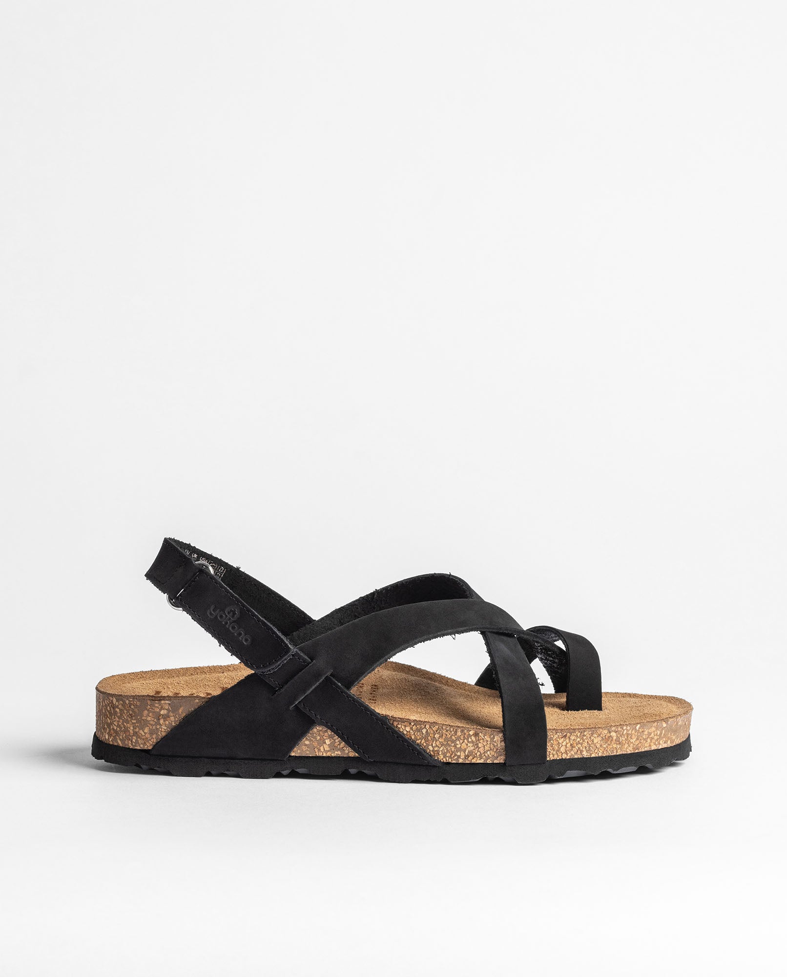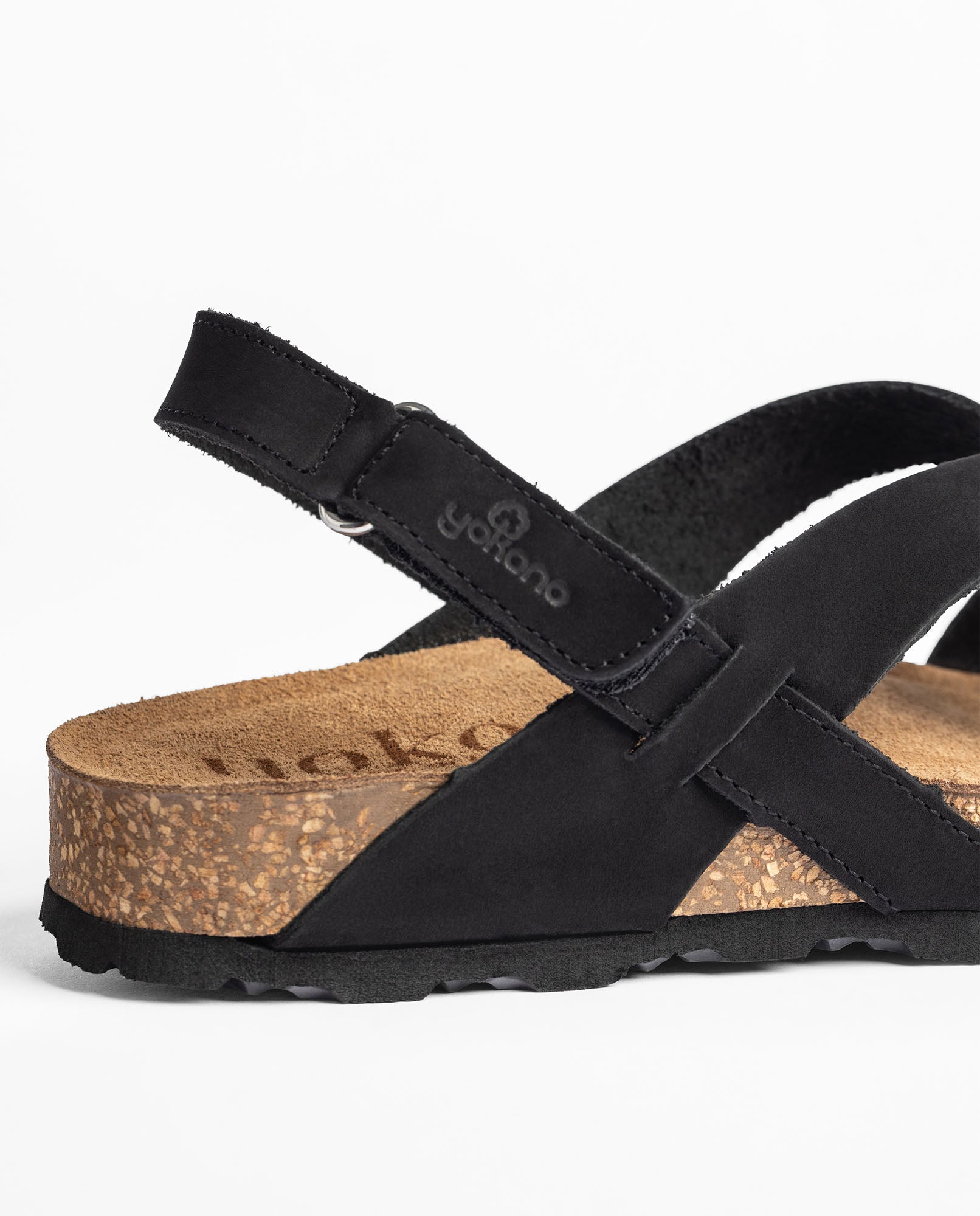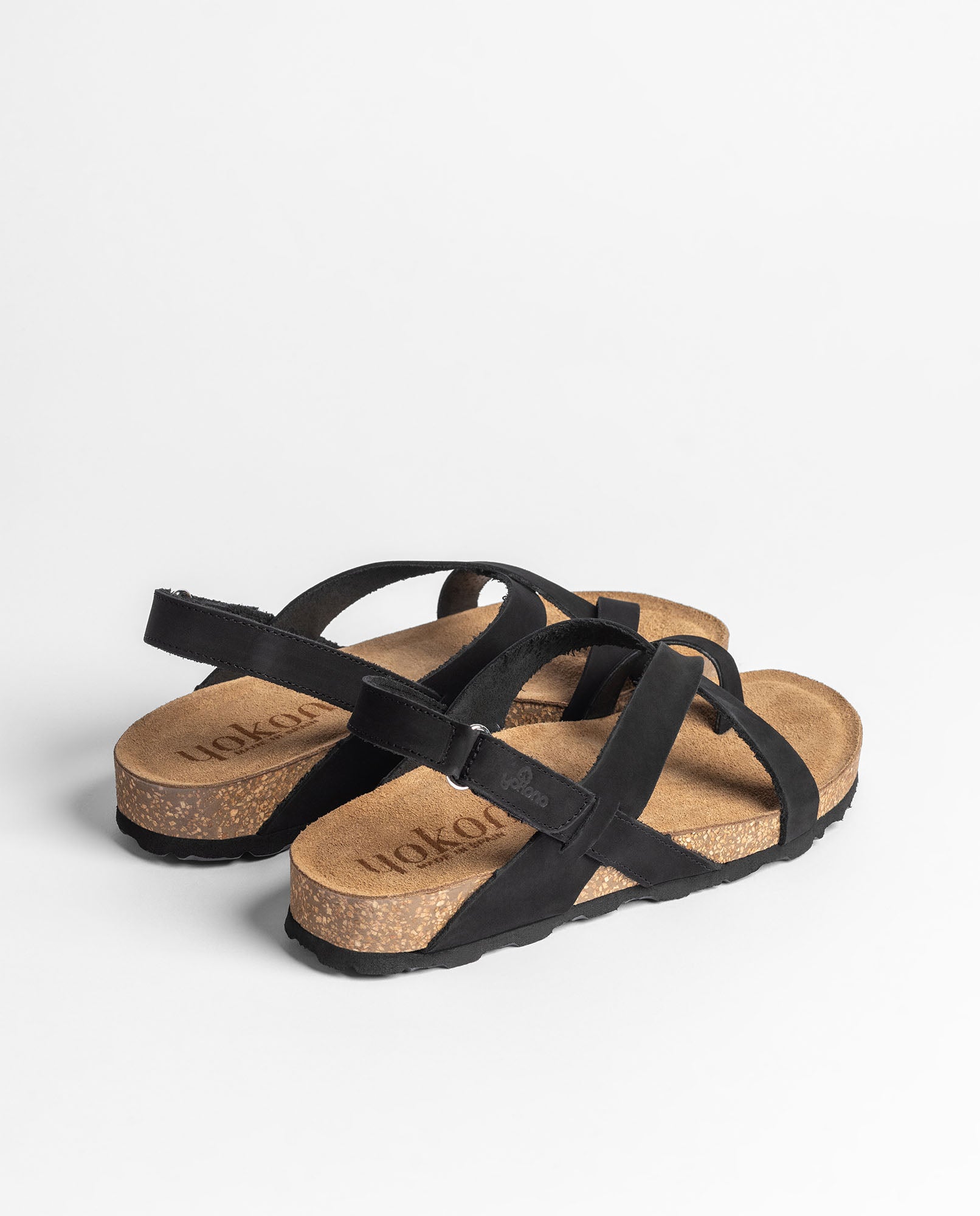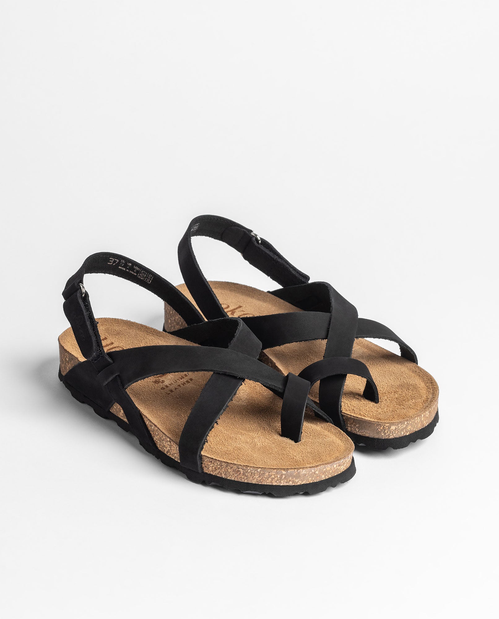Die flache Sandale JERBA 718 in Schwarz vereint hochwertiges Rindsleder mit einer nachhaltigen Sohle aus Naturkork, die dank ihrer thermoregulierenden Eigenschaften für Leichtigkeit und Komfort sorgt. Auf dieser bequemen Basis sorgt das Design mit gekreuzten Riemen in verschiedenen Farbtönen für einen frischen, sommerlichen Touch, der das Tragen besonders angenehm macht. Mit anatomisch geformter Innensohle und in Zusammenarbeit mit inländischen Lieferanten hergestellt, ist sie eine praktische, leichte und perfekte Wahl für den Alltag.