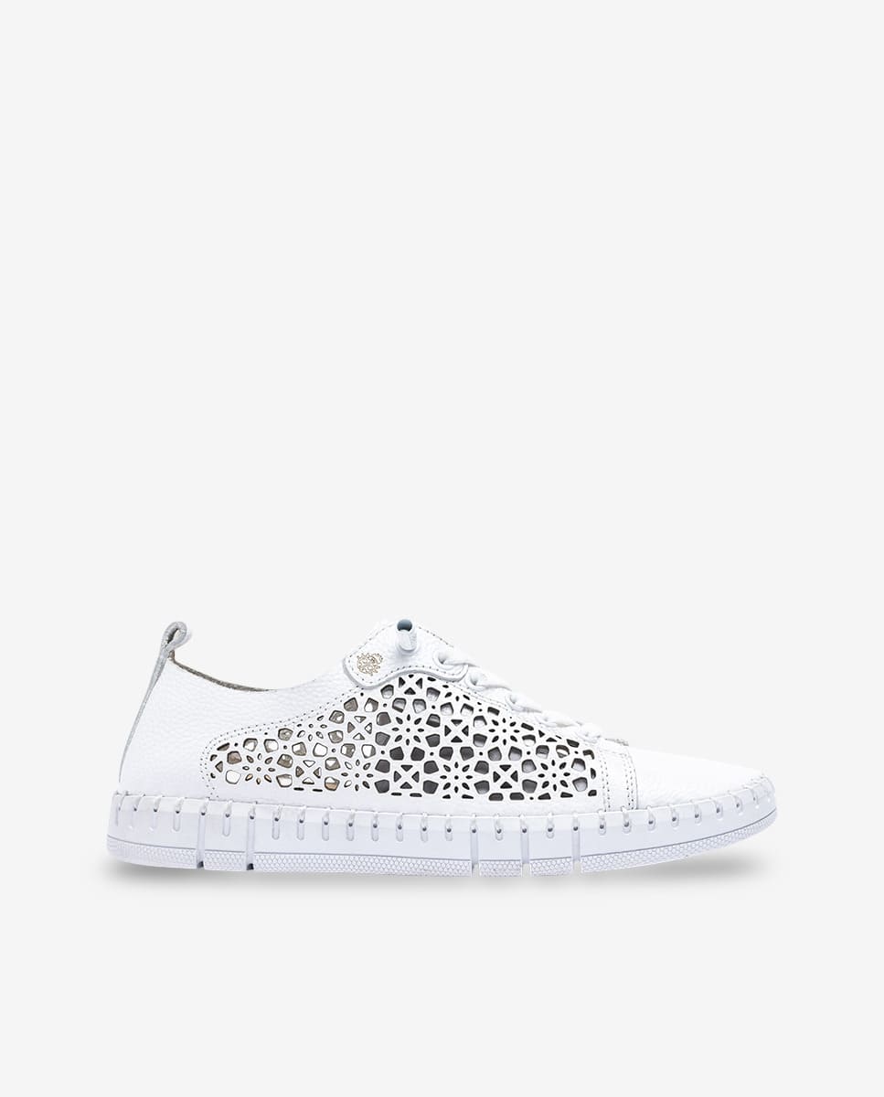 Der flache Schuh FLOW 002 in Weiß versprüht Frische und Einfachheit. Dieses Schuhwerk definiert lässige Eleganz neu mit seinem einzigartigen Lochmuster-Design und seiner 2 cm Sohle, die Stil und Komfort kombiniert. Er verfügt über eine gepolsterte und rutschfeste Innensohle, die ein Gefühl von Weichheit und Komfort bei jedem Schritt gewährleistet. Handgefertigt in Spanien auf traditionelle Weise und unter Verwendung von umweltfreundlichen pflanzlichen Farbstoffen.