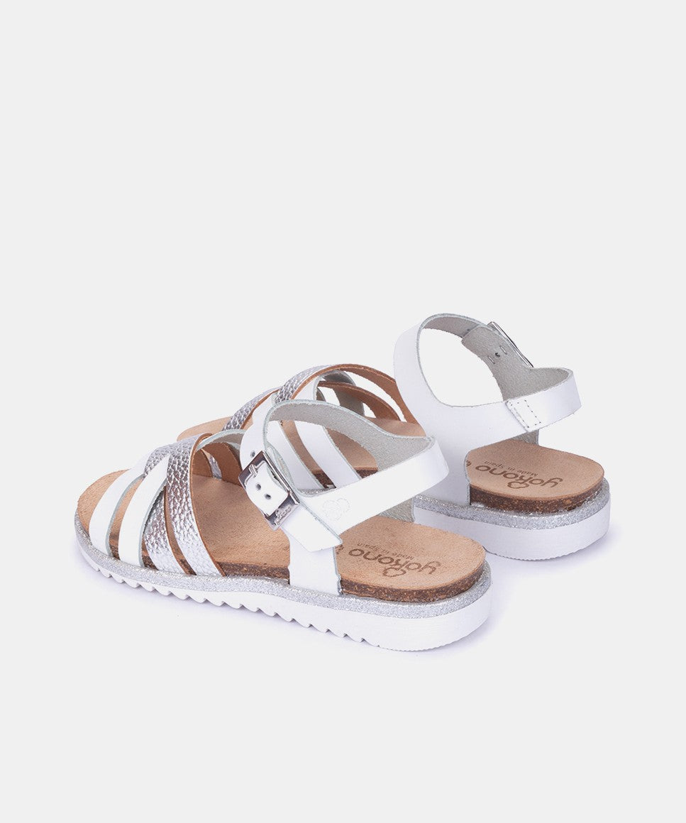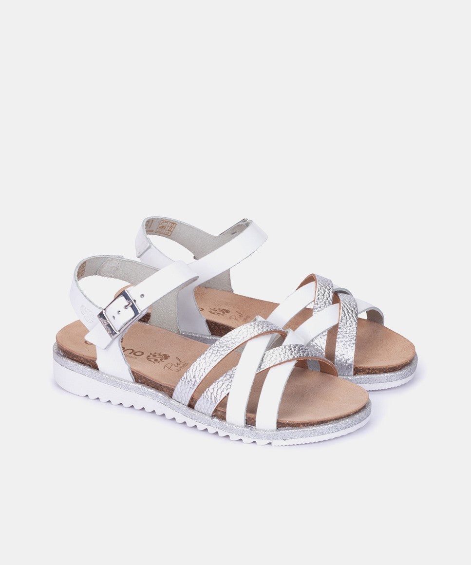 Die flache Sandale HAITI 002 ist die perfekte Wahl für kleine Abenteurer, die an warmen Tagen Komfort und Stil suchen. Aus Leder gefertigt, bietet sie ein geflochtenes Design für guten Halt und metallische Akzente für einen fröhlichen, modernen Look. Die profilierte Gummisohle sorgt für einen sicheren Tritt, während der verstellbare Schnallenverschluss eine bequeme und individuelle Passform ermöglicht. Ideal, um jedes Abenteuer mit Frische und Leichtigkeit zu begleiten.