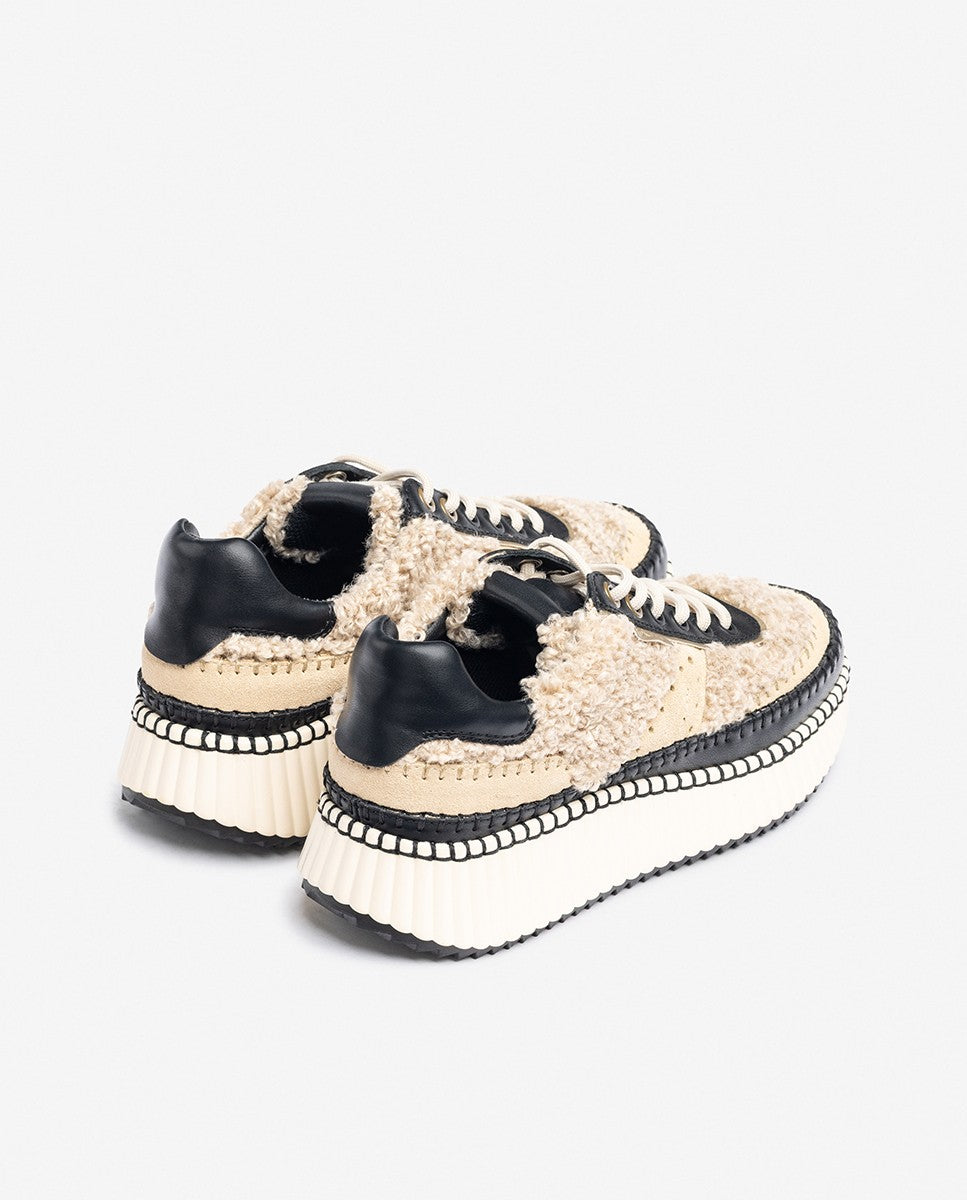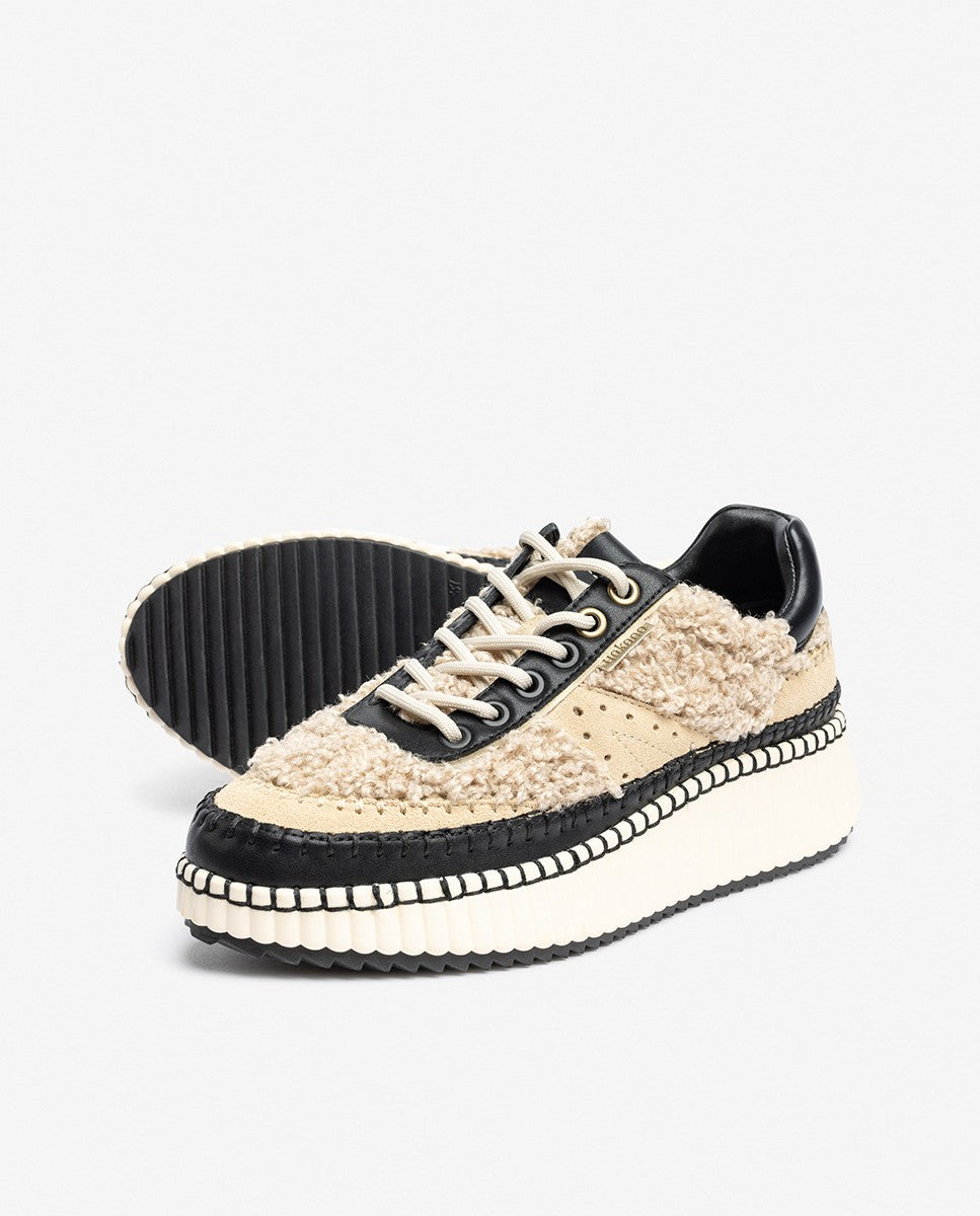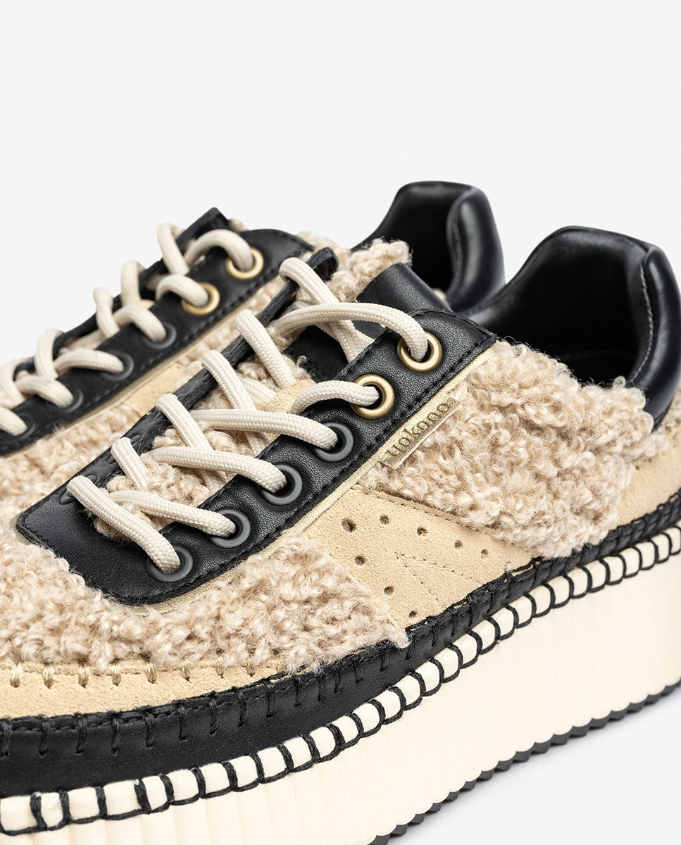 Der Sneaker CLO 002 besteht aus hochwertigem Leder in Kombination mit Lammfell, das ihm eine unverwechselbare Ausstrahlung und eine weiche Textur verleiht. Sein kontrastreiches Design in Schwarz und Weiß wird durch eine dicke, strukturierte Sohle unterstrichen, die einen avantgardistischen Stil sowie Komfort und Dämpfung bei jedem Schritt bietet. Er verfügt über nicht verstellbare Zierschnürsenkel und sorgfältig gearbeitete Details, was ihn zu einer idealen Wahl für alle macht, die einen vielseitigen, originellen Schuh mit Persönlichkeit suchen.