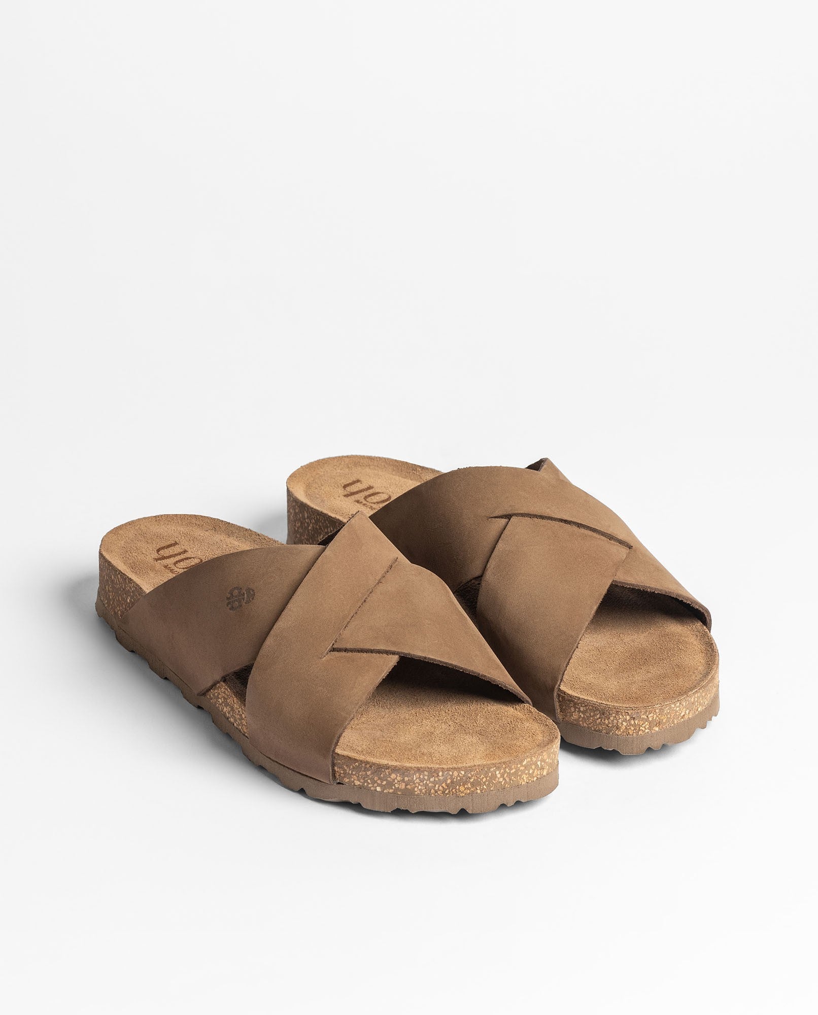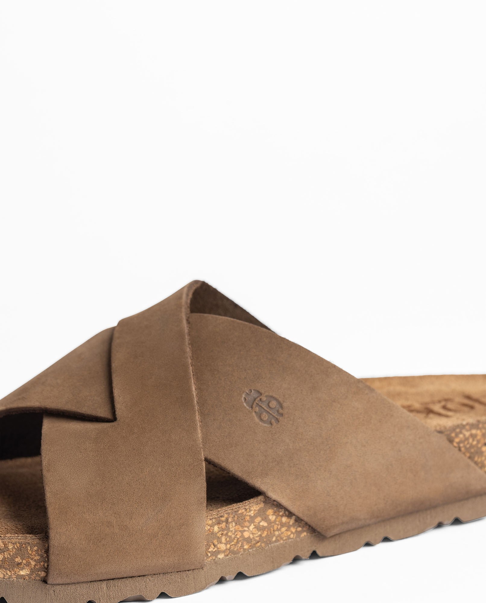 The flat sandal JERBA 300 in light brown —a trendy mocha-mousse–inspired shade— is crafted from high-quality cowhide leather and features a crossed-strap design that is comfortable, flattering, and very easy to style. Its anatomical footbed provides well-being with every step, while the sole made from sustainable natural cork —with thermal-regulating properties— maintains a pleasant feel even on the warmest days. Produced in collaboration with local suppliers, it is a high-quality sandal with a clean, simple style, perfect for accompanying you in everyday life with comfort and ease.
