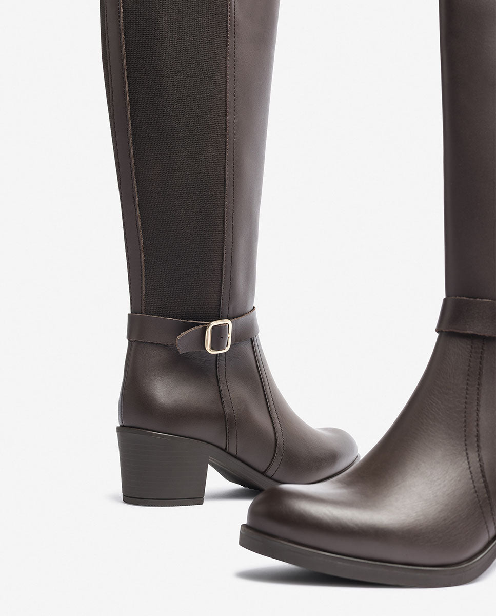 The Lille 015 heeled boot in Brown is an elegant high cane boot that combines style and functionality. Its design presents a lateral elastic that ensures a comfortable and adaptable adjustment to different legs. The decorative buckle adds a modern touch to its design, which offers an ideal mixture of comfort and style, being a versatile choice for any occasion. Artisanally elaborated in Spain with skin material and plant dyes respectful of the environment.