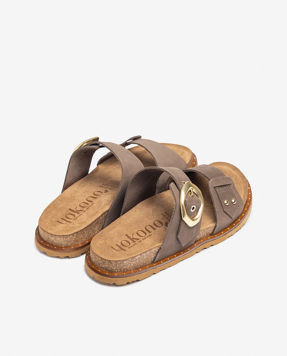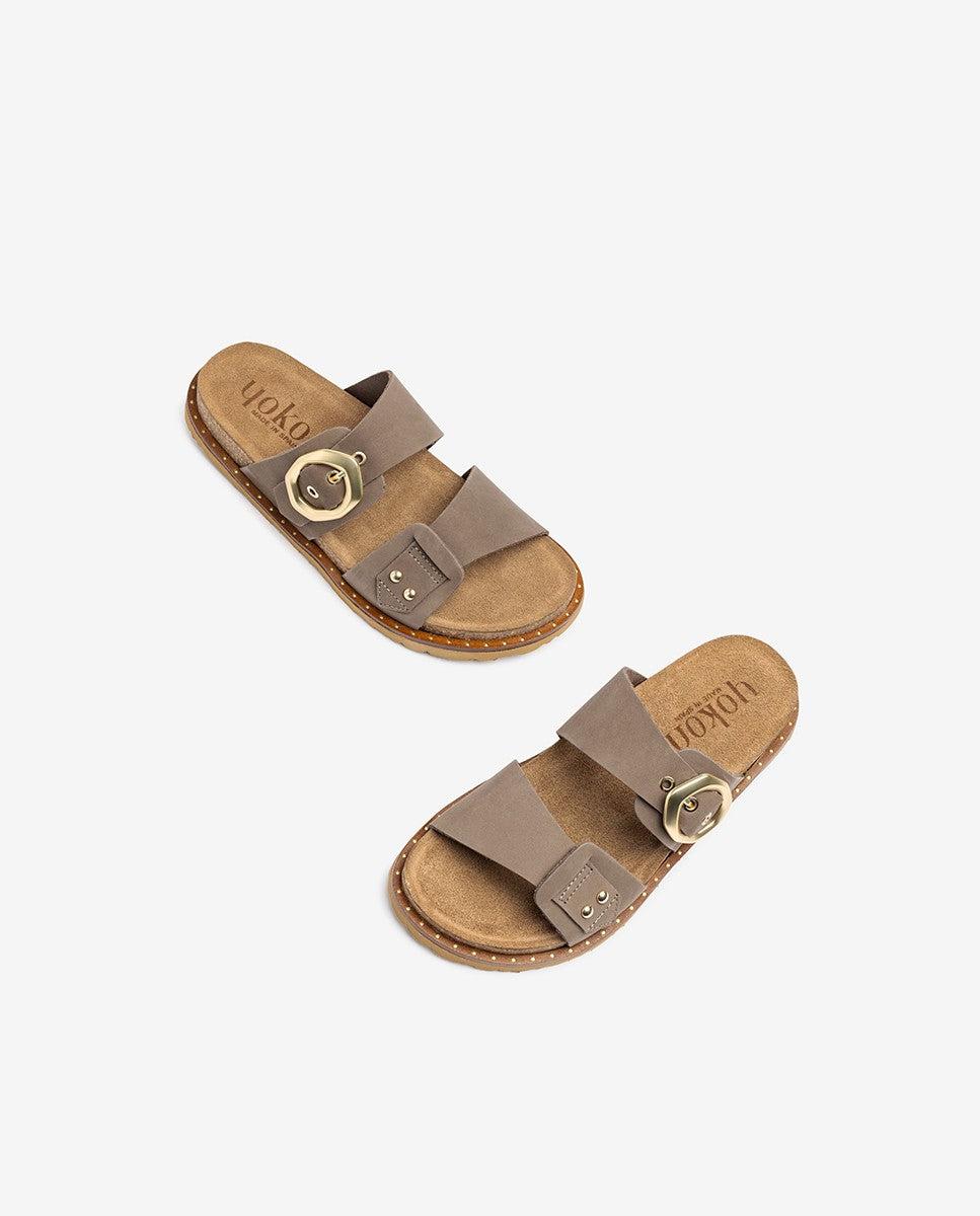 The flat sandal BOLUS 254 stands out with its modern design featuring two straps, with the upper strap adorned with an asymmetrical buckle that adds originality. Open at the back, it offers freshness and comfort, while the adjustable buckle ensures a perfect fit. Its simple and elegant design makes it the ideal choice to complete any summer look with style and comfort.
