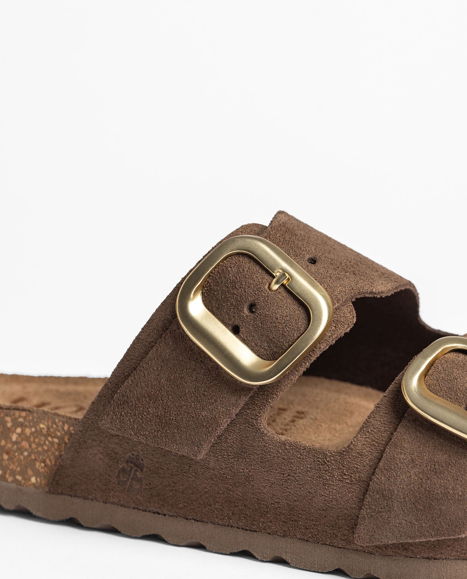 The flat sandal JERBA 700 in dark brown is crafted from high-quality cowhide leather and features two adjustable buckle straps that allow for easy and comfortable fit adjustment. Its anatomical footbed provides well-being from the very first step, while the sole made from sustainable natural cork —with temperature-regulating properties— ensures a pleasant feel even on the warmest days. Produced in collaboration with local suppliers, it is a lightweight, practical sandal, perfect for accompanying you in your everyday rhythm.