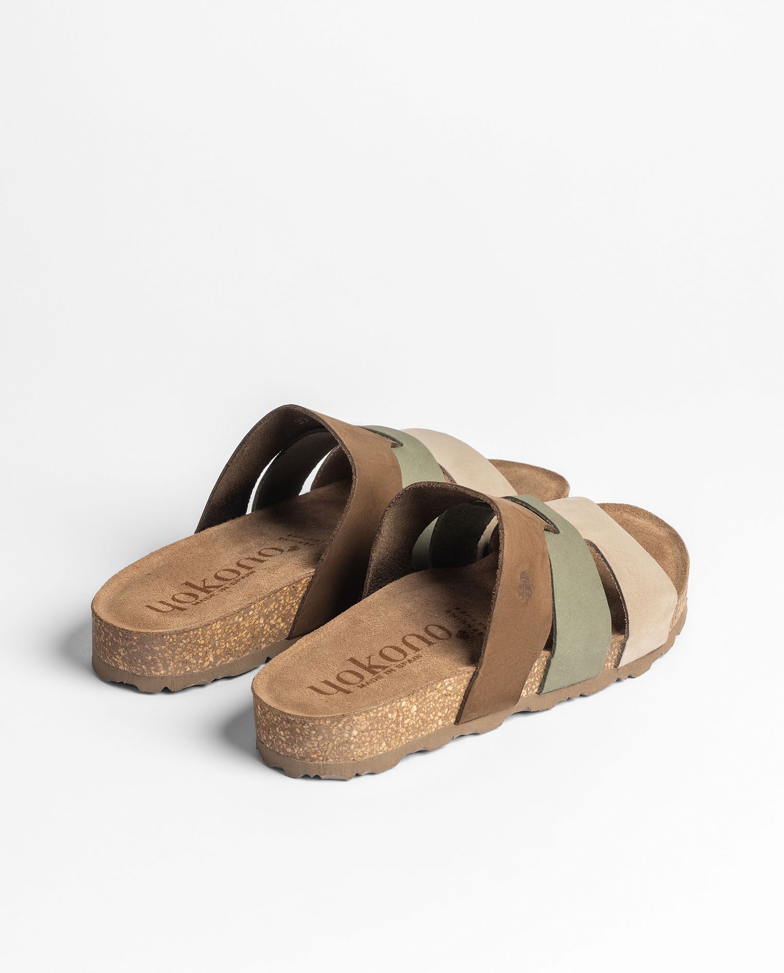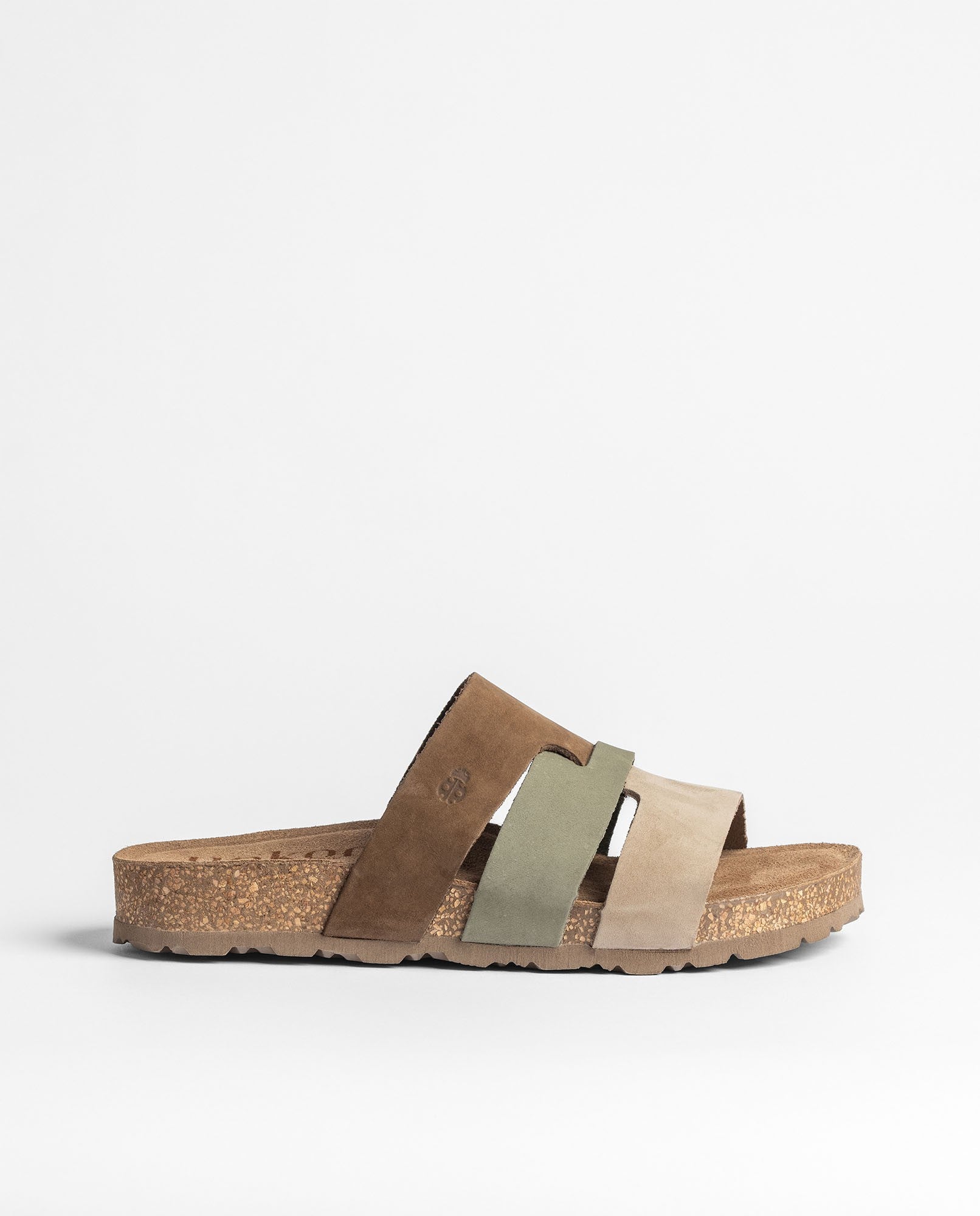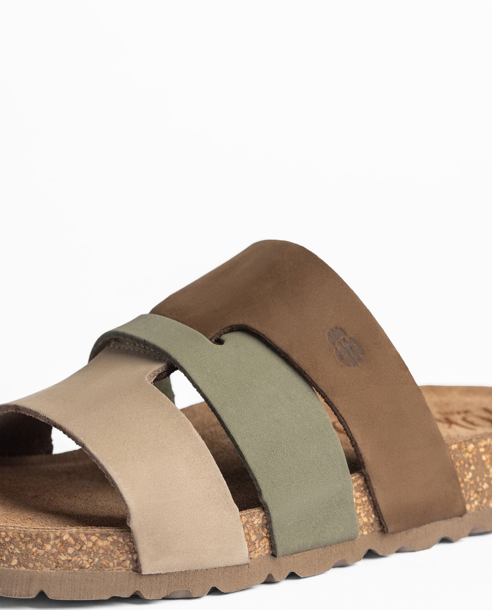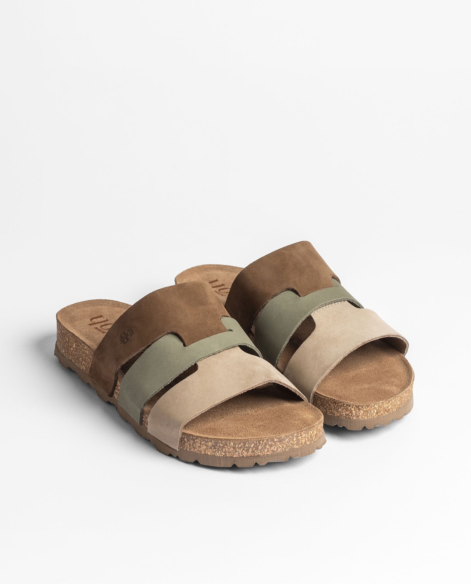 La sandalia plana JERBA 116 en color verde está confeccionada en piel vacuna de alta calidad y presenta un diseño de tres tiras que asegura una buena sujeción y aporta un estilo propio y fácilmente reconocible. Su plantilla anatómica proporciona comodidad durante toda la jornada y el piso de corcho natural sostenible suma ligereza y bienestar gracias a sus propiedades de regulación térmica. Fabricada con proveedores nacionales, es una sandalia que combina calidad, confort y un acabado que funciona muy bien en el día a día.