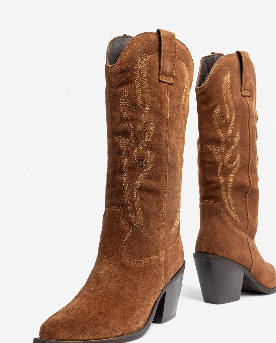 La bota de tacón RID 403 reinventa el estilo cowboy con una elegancia rotunda. Fabricada en piel de alta calidad, su textura suave y natural realza cada detalle del diseño: desde los bordados de inspiración western hasta su caña alta que estiliza la pierna con carácter. El tacón cubano aporta altura de 6 cm con estabilidad, mientras que la puntera afilada y el acabado artesanal la convierten en una pieza icónica para tus looks de temporada.
