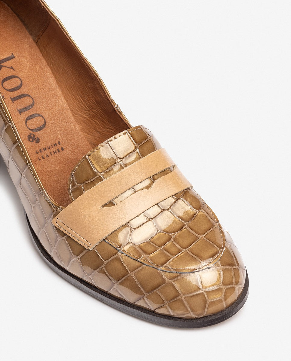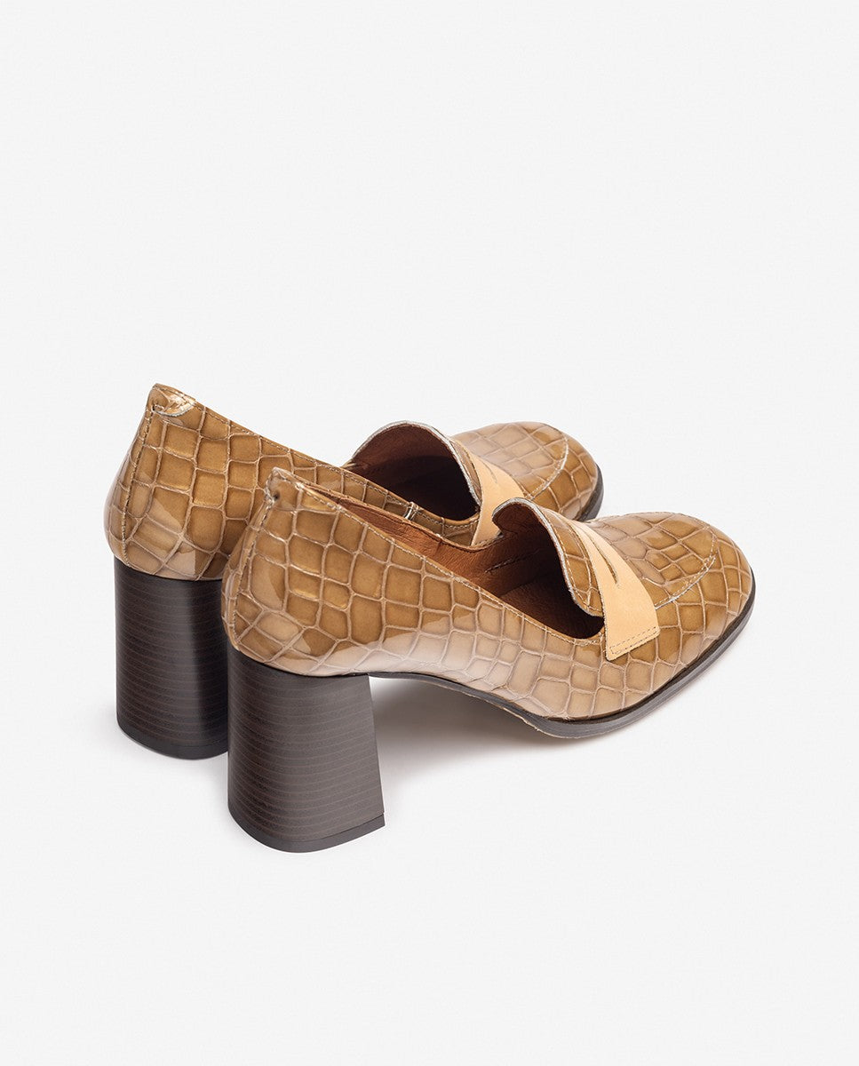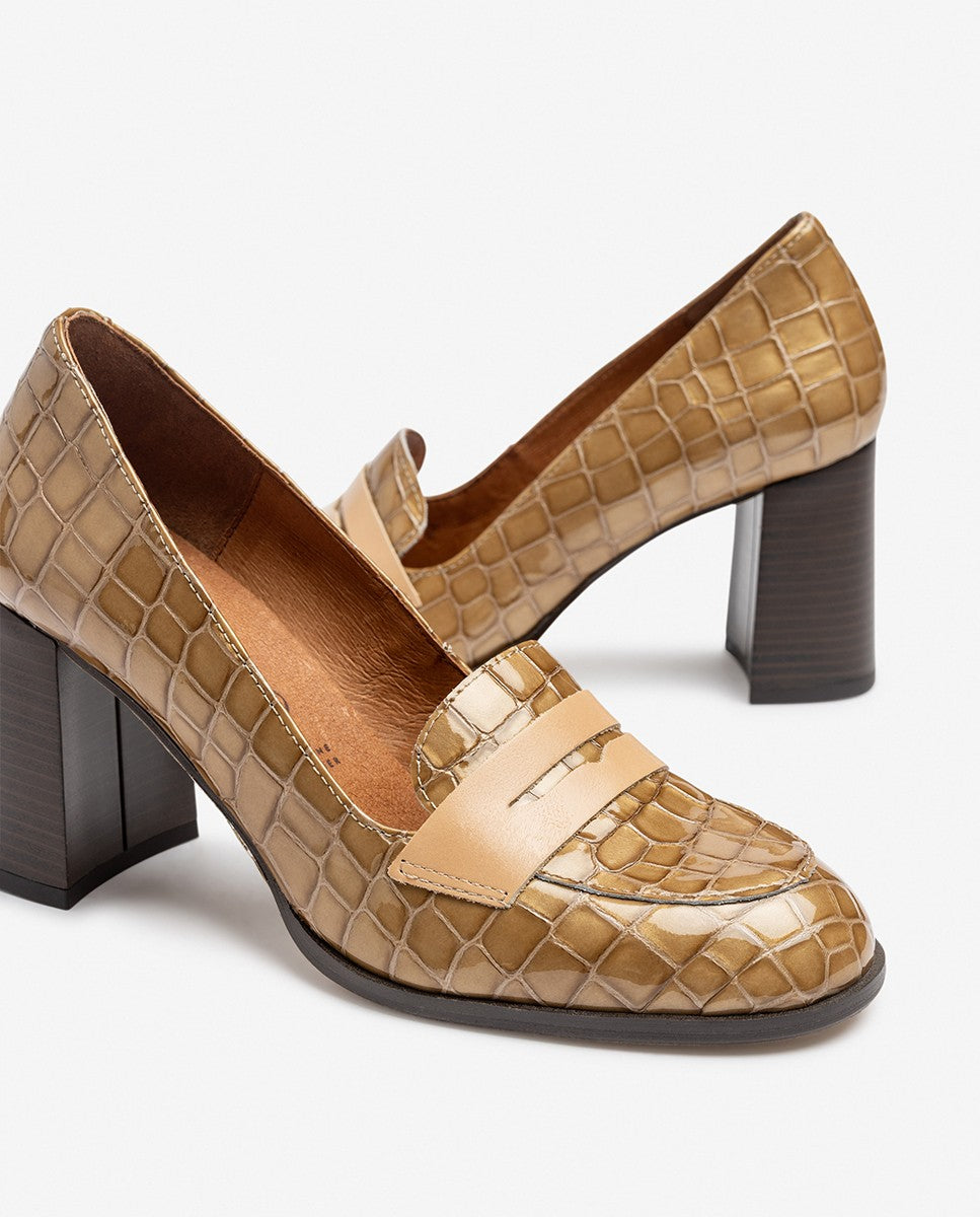 El zapato de tacón LOIR 003 combina elegancia y comodidad en un diseño atemporal. Fabricado en piel con acabado acharolado y estampado efecto cocodrilo, aporta un toque sofisticado y versátil a cualquier look. Su tacón ancho de 8 cm garantiza estabilidad y confort durante todo el día, mientras que la horma clásica y el detalle de antifaz en el empeine lo convierten en un imprescindible para ocasiones especiales.