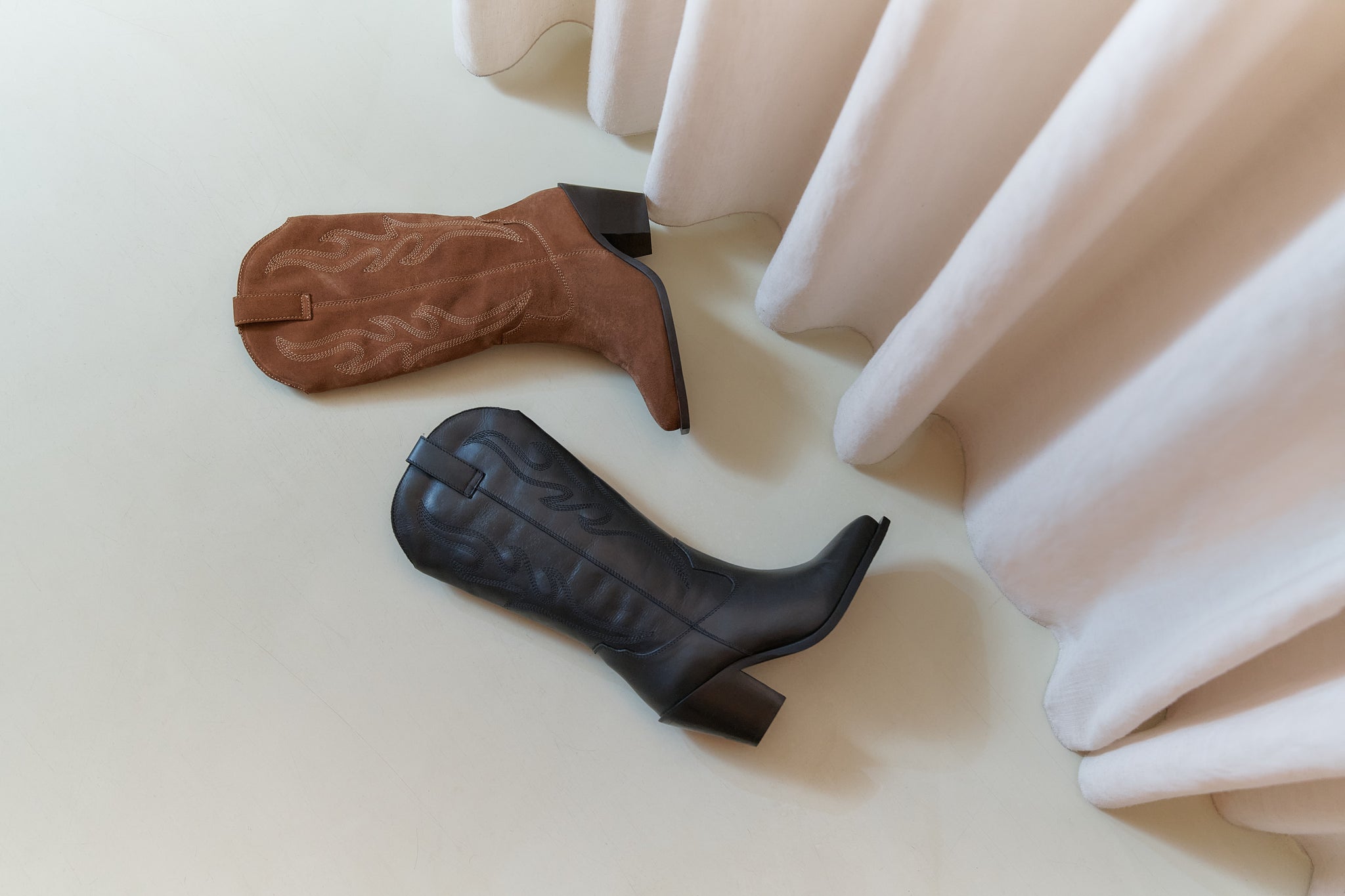 La bota de tacón RID 403 reinventa el estilo cowboy con una elegancia rotunda. Fabricada en piel de alta calidad, su textura suave y natural realza cada detalle del diseño: desde los bordados de inspiración western hasta su caña alta que estiliza la pierna con carácter. El tacón cubano aporta altura de 6 cm con estabilidad, mientras que la puntera afilada y el acabado artesanal la convierten en una pieza icónica para tus looks de temporada.