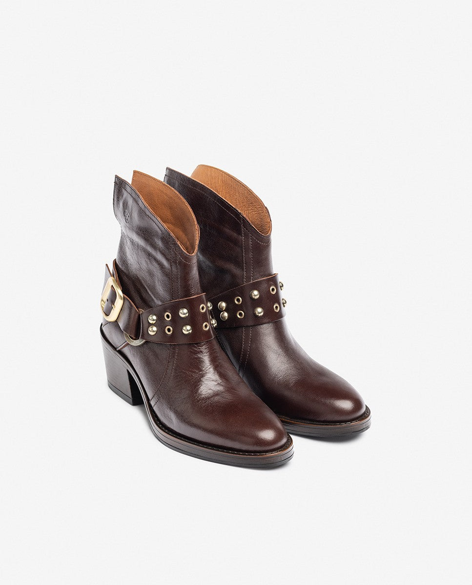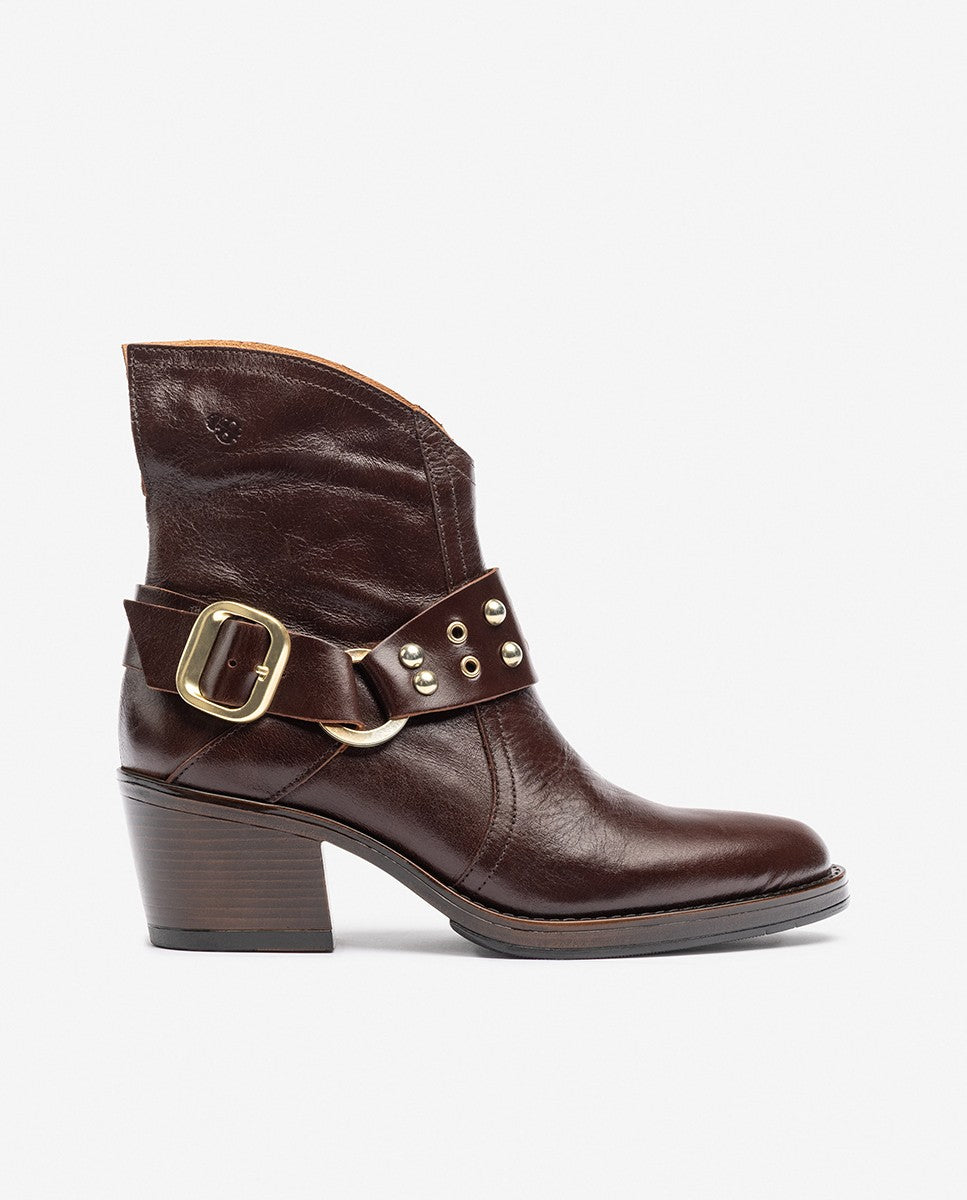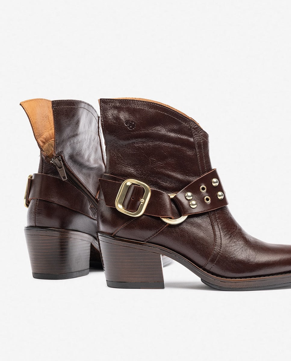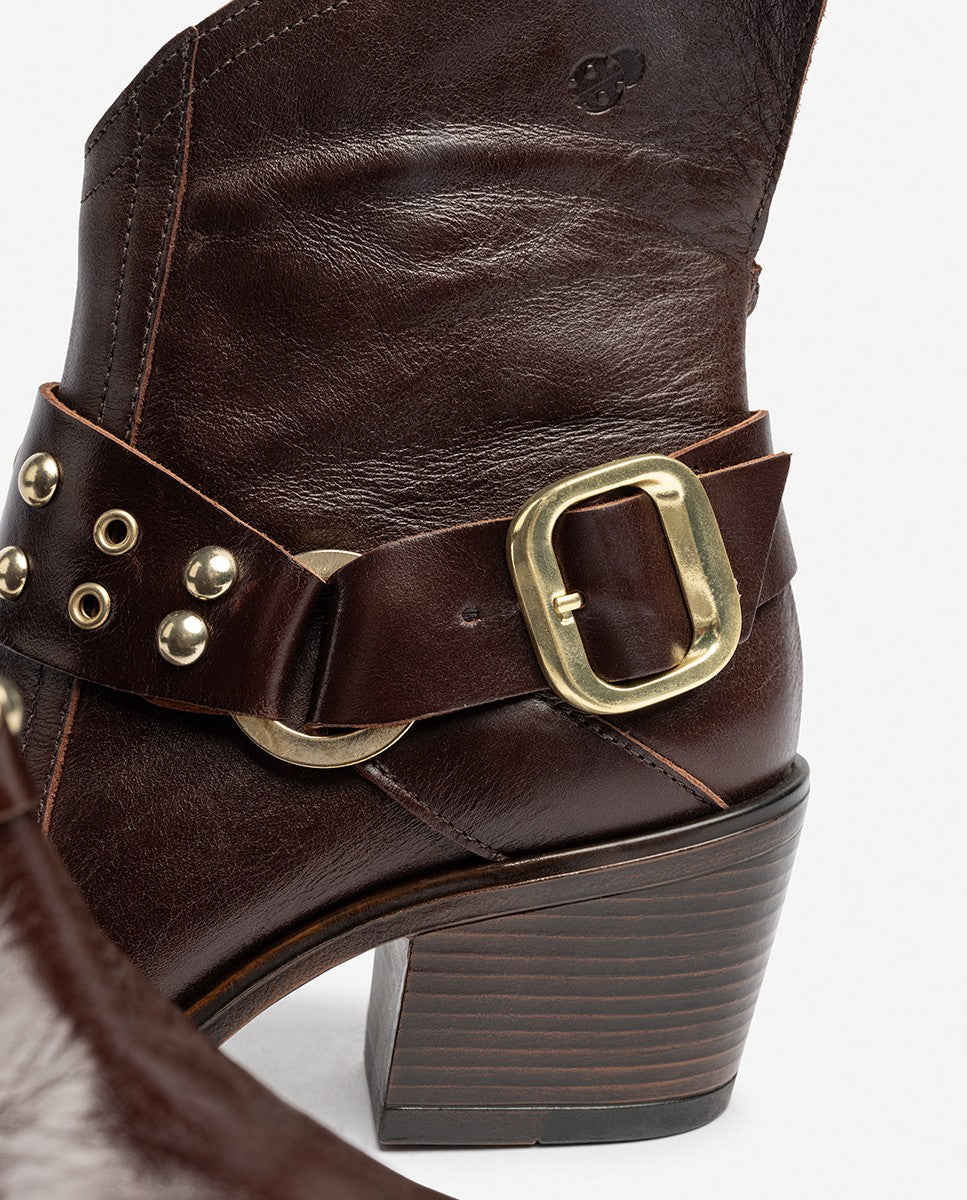 La botte à talon BRAVA 001 a tout pour plaire : caractère, design et qualité. Fabriquée en cuir de haute qualité avec une finition vieillie qui lui confère de la personnalité, ce modèle d’inspiration se transforme en la pièce maîtresse de n’importe quel look. Elle se distingue par sa bride décorative ornée de clous et d’une boucle métallique, sa pointe élancée et son talon large de hauteur moyenne, qui offre du confort sans renoncer au style.