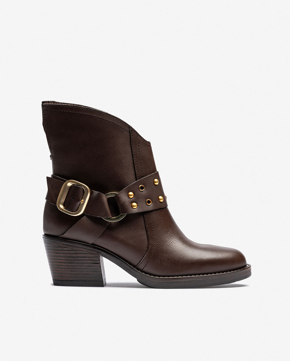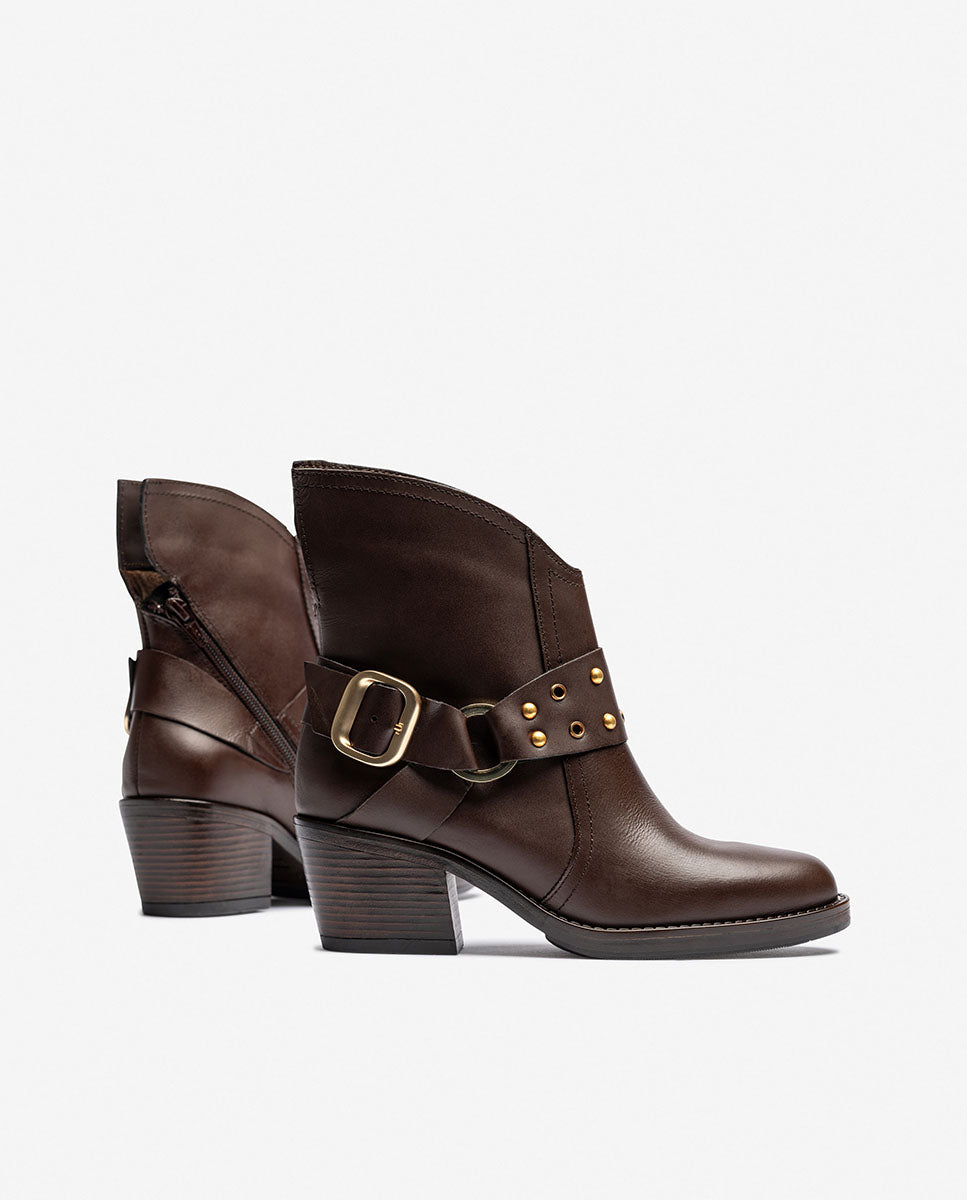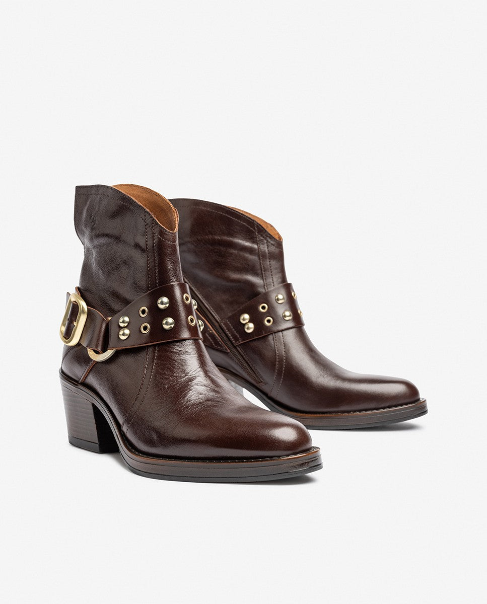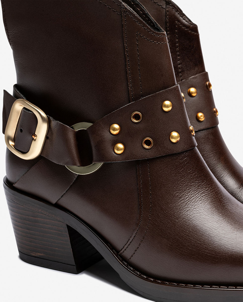 La botte à talon BRAVA 001 a tout pour plaire : caractère, design et qualité. Fabriquée en cuir de haute qualité avec une finition vieillie qui lui confère de la personnalité, ce modèle d’inspiration se transforme en la pièce maîtresse de n’importe quel look. Elle se distingue par sa bride décorative ornée de clous et d’une boucle métallique, sa pointe élancée et son talon large de hauteur moyenne, qui offre du confort sans renoncer au style.
