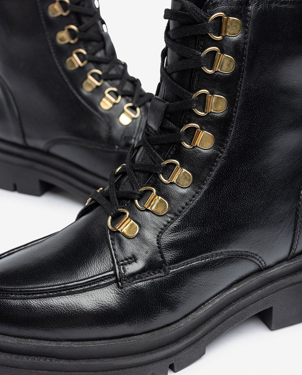 La botte plate LAN 312 se distingue par son design fonctionnel avec une touche inspirée des chaussures de montagne. Équipée de lacets et d’œillets métalliques, elle combine une esthétique outdoor avec une approche urbaine, idéale pour le quotidien avec style. Fabriquée en cuir de haute qualité, elle intègre une fermeture éclair intérieure pour faciliter l’enfilage et une semelle épaisse et antidérapante, garantissant stabilité et confort même lors de longues journées.