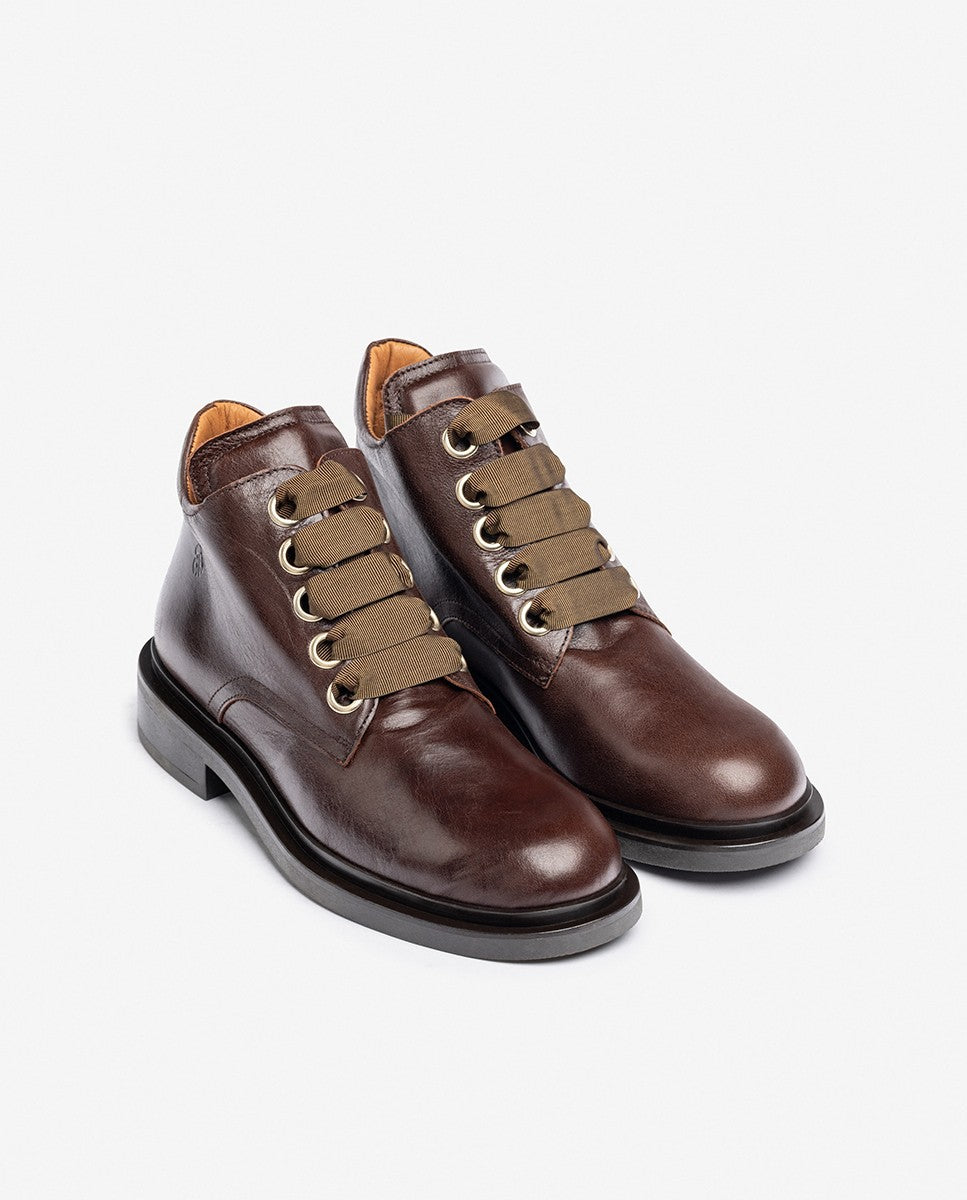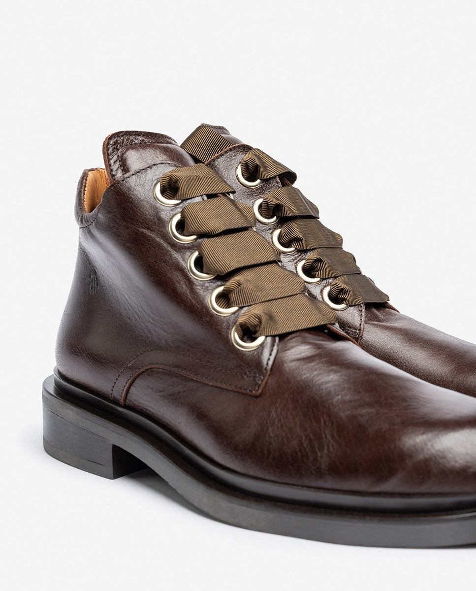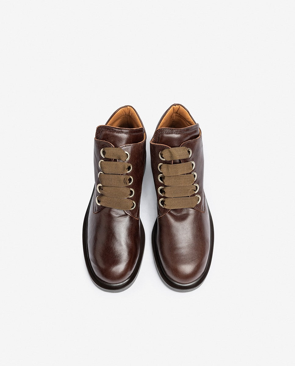 La botte plate LEI 006 se distingue par son design volumineux et son allure contemporaine. Confectionnée en cuir de haute qualité, elle intègre une languette structurée et de larges lacets décoratifs, qui lui apportent de la personnalité sans perdre en fonctionnalité. Sa semelle robuste et plate garantit la stabilité, tandis que sa forme en fait une option confortable pour un usage quotidien. Un modèle avec un caractère affirmé, parfait pour celles qui recherchent design et confort.