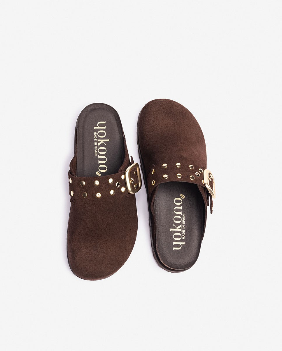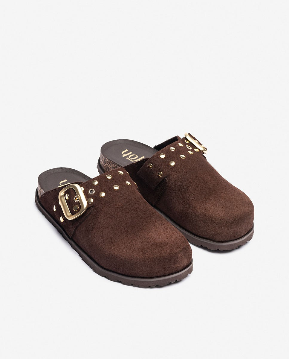 Le sabot YOKANA 001 est élaboré en daim souple de haute qualité et présente un design élégant avec une boucle métallique latérale ornée de petits clous qui apportent une touche distinctive. Sa semelle intérieure anatomique garantit un confort optimal, tandis que sa semelle légère et antidérapante offre stabilité à chaque pas. Un modèle polyvalent et intemporel, parfait pour s’associer à des looks décontractés tout en conservant une allure sophistiquée.