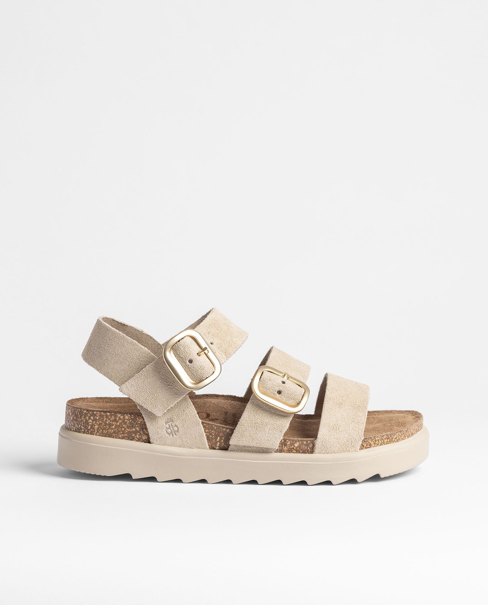 Il sandalo con plateau TUNEZ 127 in beige è realizzato in pelle bovina e combina due strisce ad una fibbia per regolare la chiusura in modo personalizzato. La soletta anatomica ed il plateau in sughero sostenibile apportano comodità e stabilità dal primo utilizzo. Prodotto con materie prime nazionali, è un modello resistente e pratico, perfetto per chi cerca una calzatura versatile che possa adattarsi facilmente a ritmi e piani differenti.