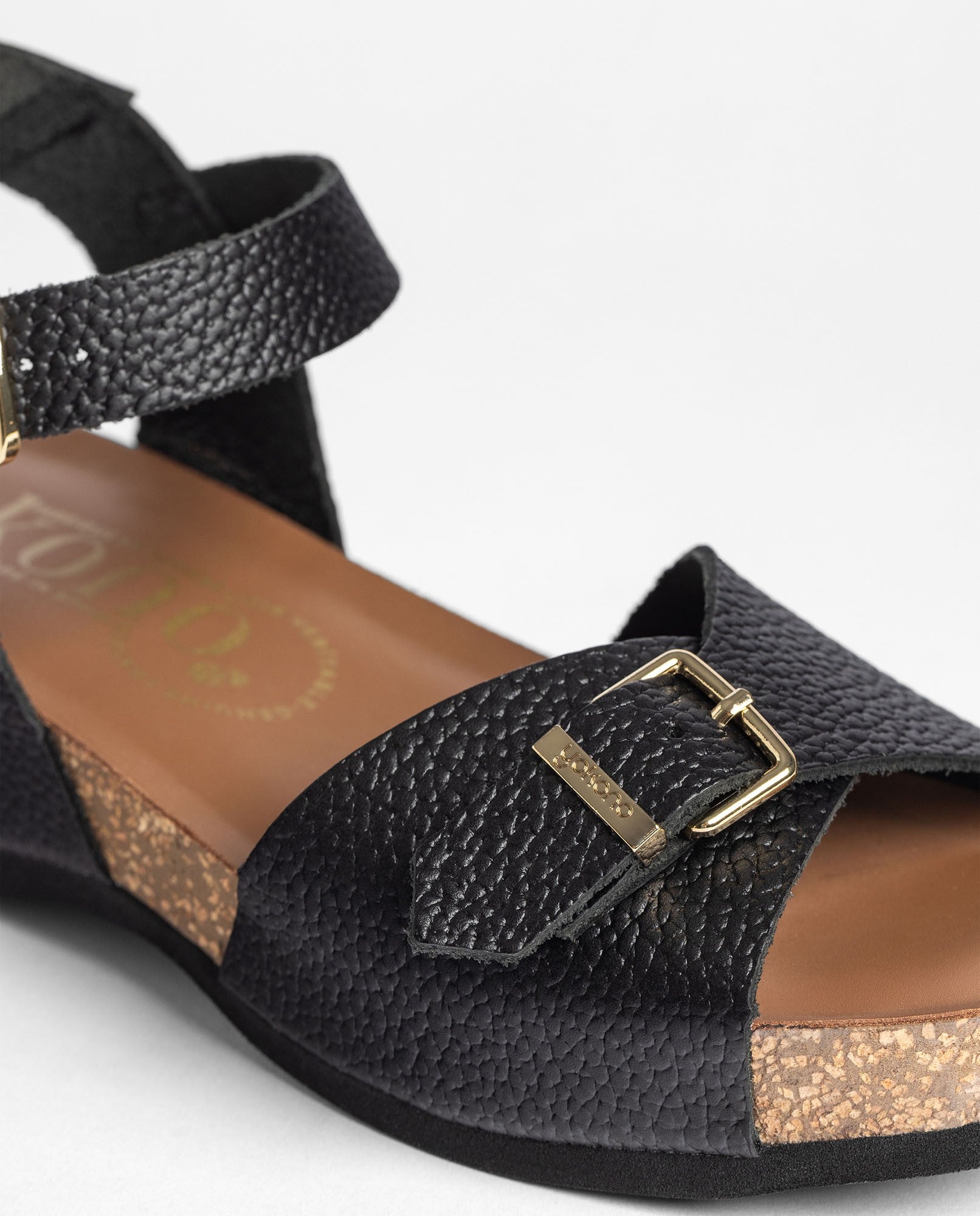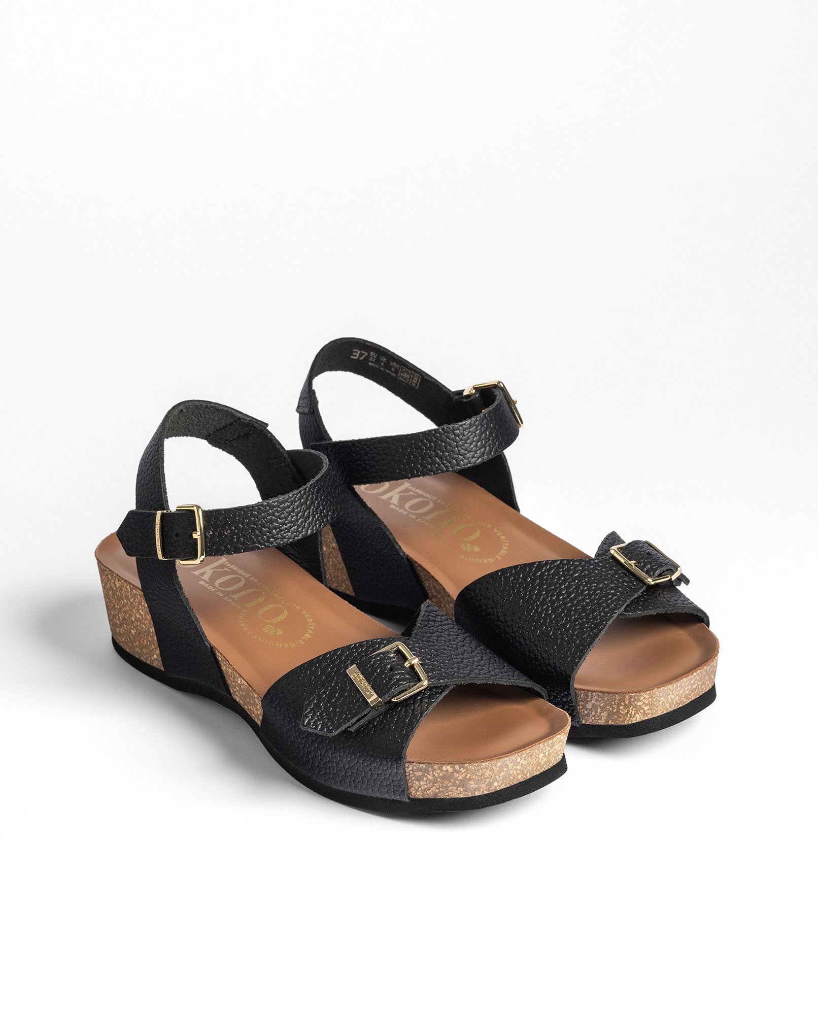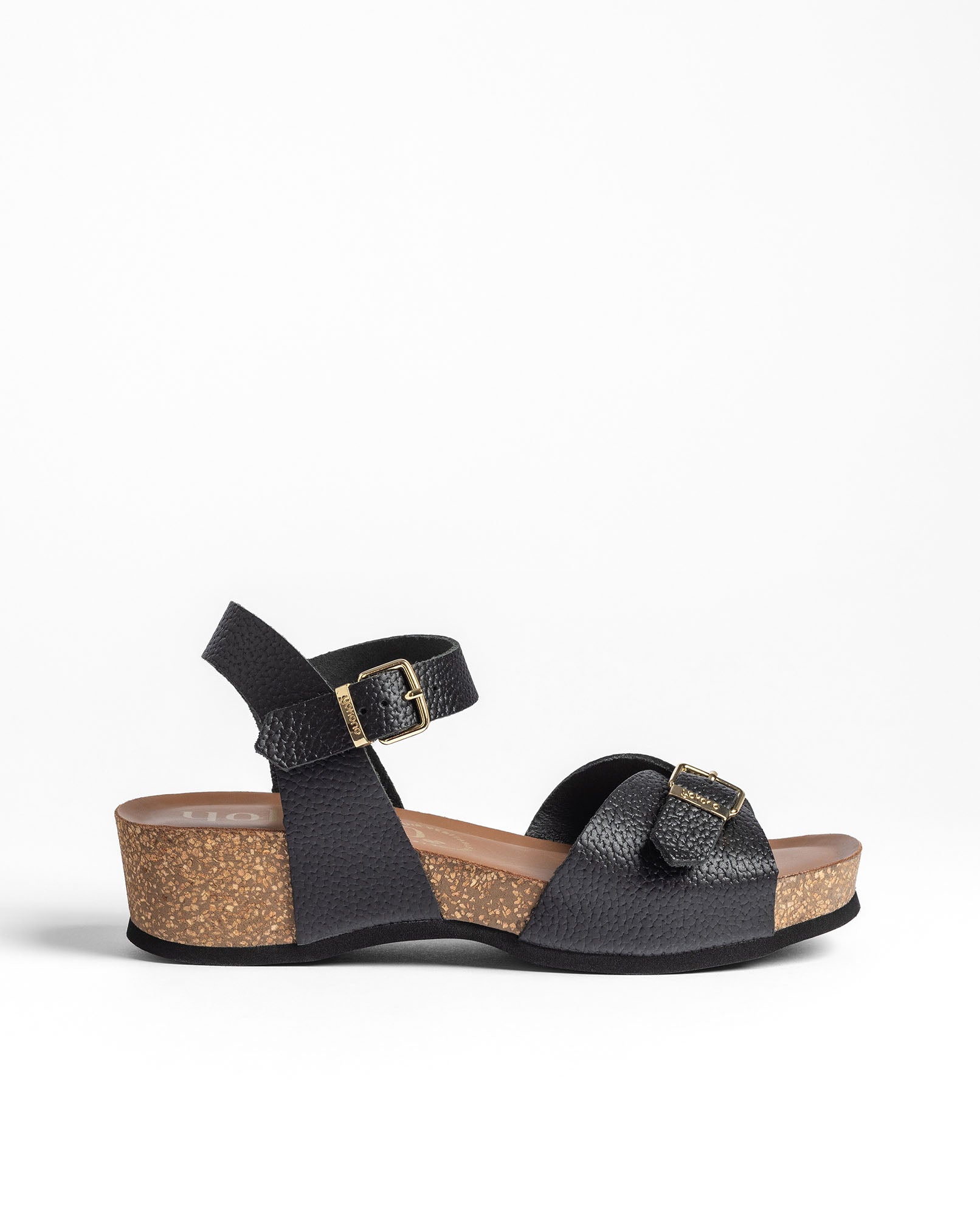 Il sandalo con zeppa BOGO 263 in nero è realizzato in pelle 100% bovina e si distingue per il design con tomaia e cinturino regolabile, impreziosita da una fibbia metallica che apporta un tocco di eleganza. Dispone di soletta anatomica e di una zeppa leggera in sughero naturale sostenibile, con proprietà di regolazione termica che fa perdurare la freschezza. Prodotto con materie prime nazionali, questo modello offre stile, qualità e comfort che ti accompagnano giorno dopo giorno.