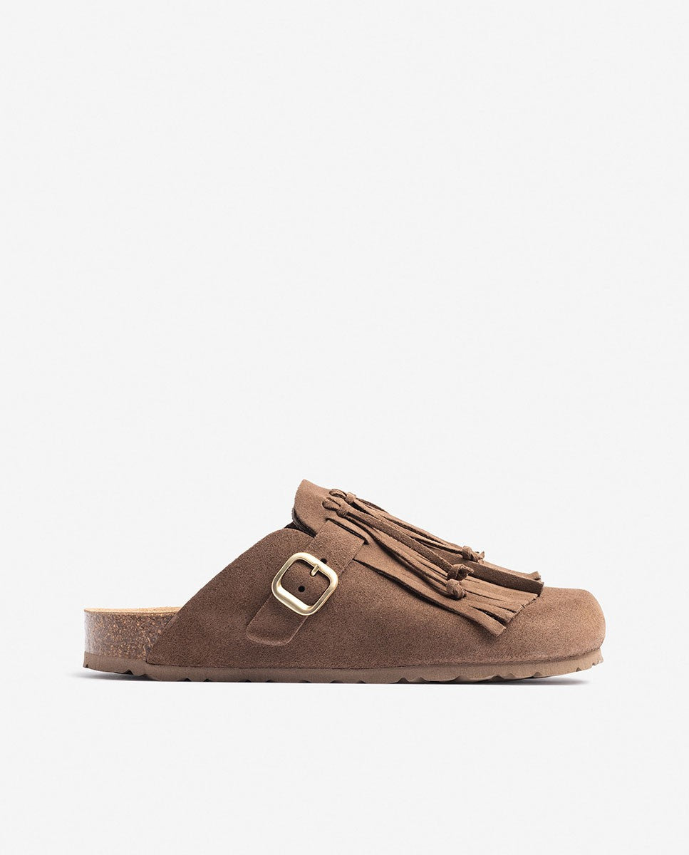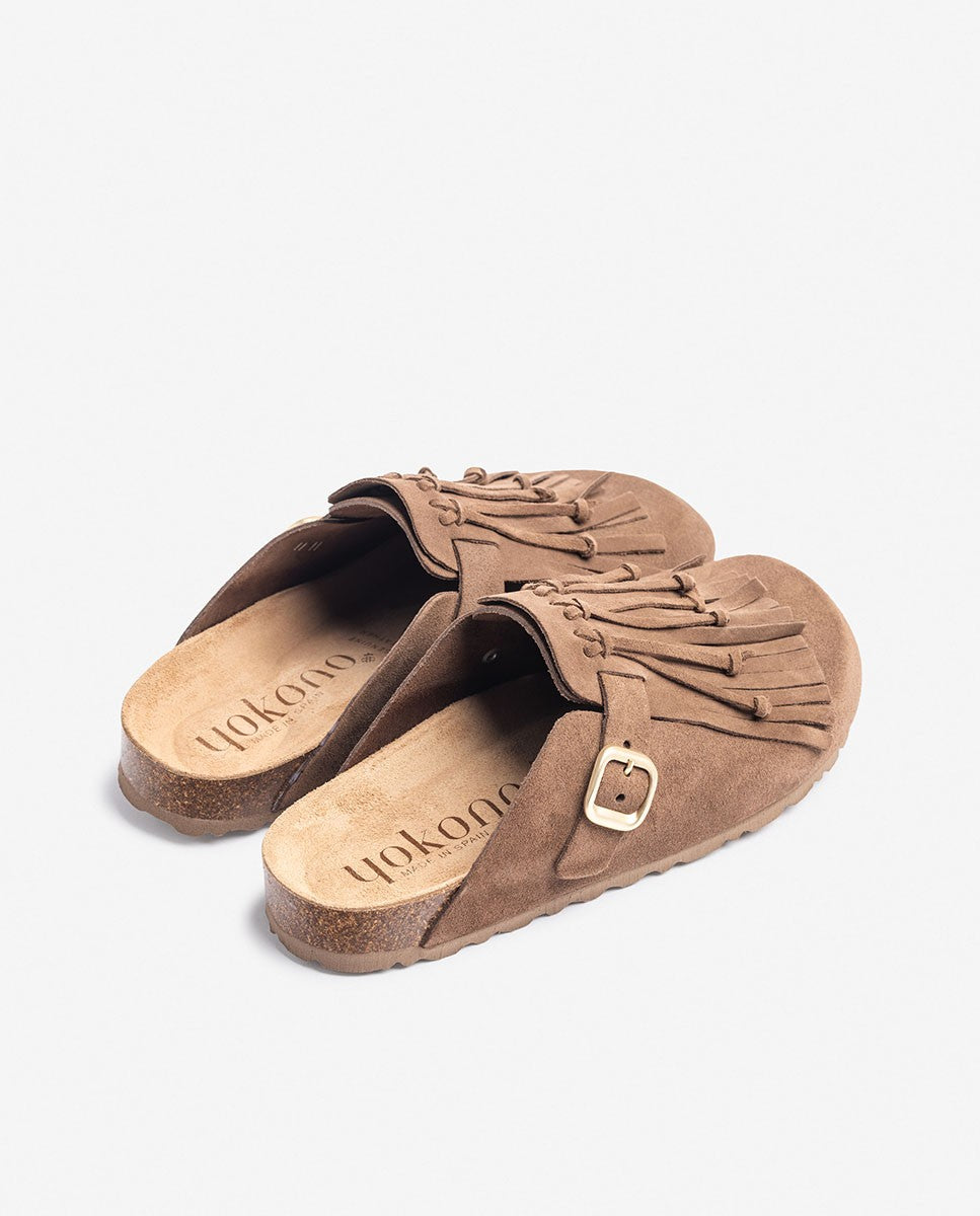 Lo zoccolo 260 è realizzato in morbido scamosciato di alta qualità e si distingue per un design con frange ornamentali che gli apportano uno stile bohemien ed originale. Dispone di una fibbia metallica laterale regolabile che assicura una calzata personalizzata e di una soletta che offre confort ottimale per tutto il giorno. La suola leggera antiscivolo garantisce stabilità e sicurezza, rendendo questa calzatura l'opzione perfetta per chi cerca comodità senza rinunciare ad un tocco di unicità nel proprio look.