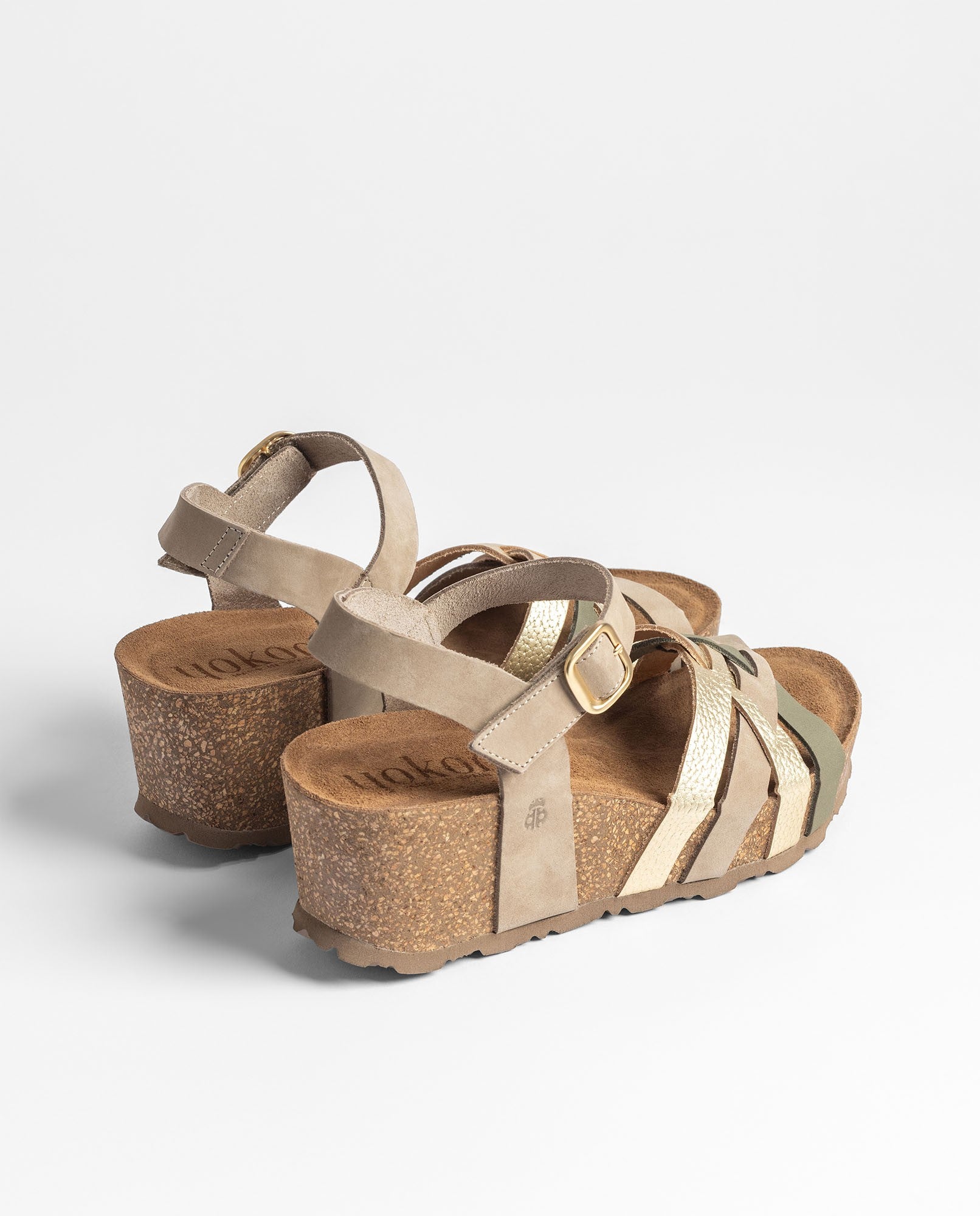 Il sandalo con zeppa BARI 264 in verde è realizzato in pelle 100% mucca e presenta un design di lacci abbinati che apportano uno stile fresco ed equilibrato. La soletta anatomica e la zeppa leggera in sughero naturale - sostenibile e con proprietà di regolazione termica- donano un comfort naturale e costante. Prodotto con materie prime nazionali, questa calzatura si distingue per la qualità, la comodità e un tocco unico che ti accompagna in ogni passo.