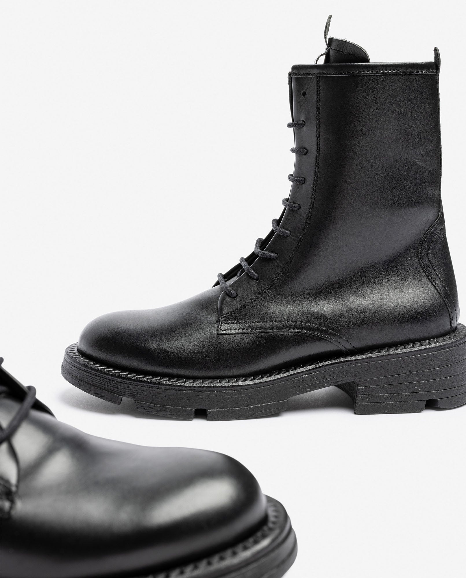El botín plano ELZE 010 es una apuesta segura para quienes buscan funcionalidad sin renunciar al estilo. Su diseño de cordones frontales tipo militar, combinado con una horma limpia y minimal, aporta carácter y versatilidad. Fabricado en piel de alta calidad, este modelo incorpora una cremallera interior para facilitar el calce y una suela gruesa con buen agarre, ideal para el uso diario.