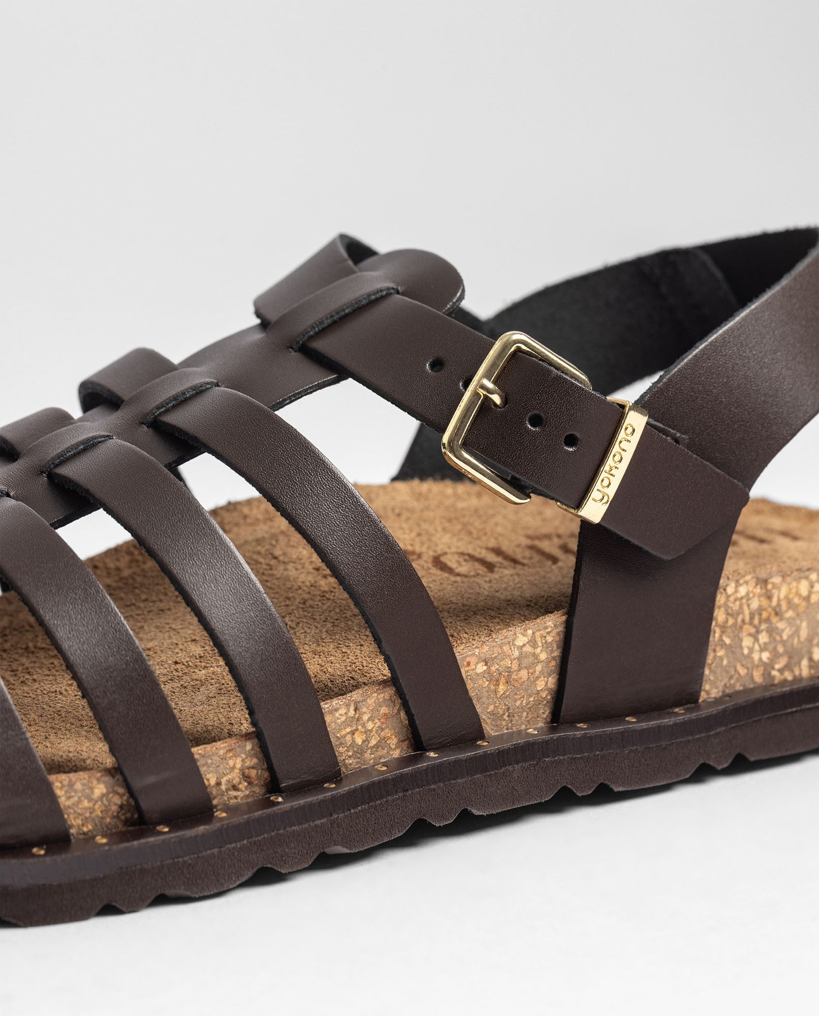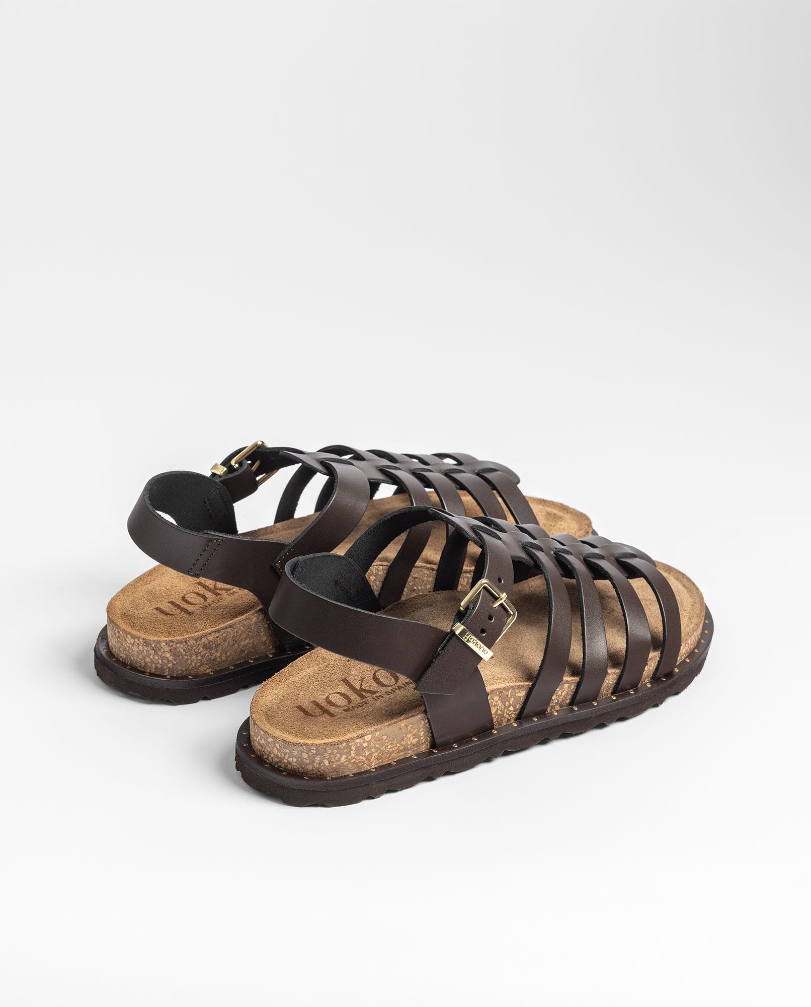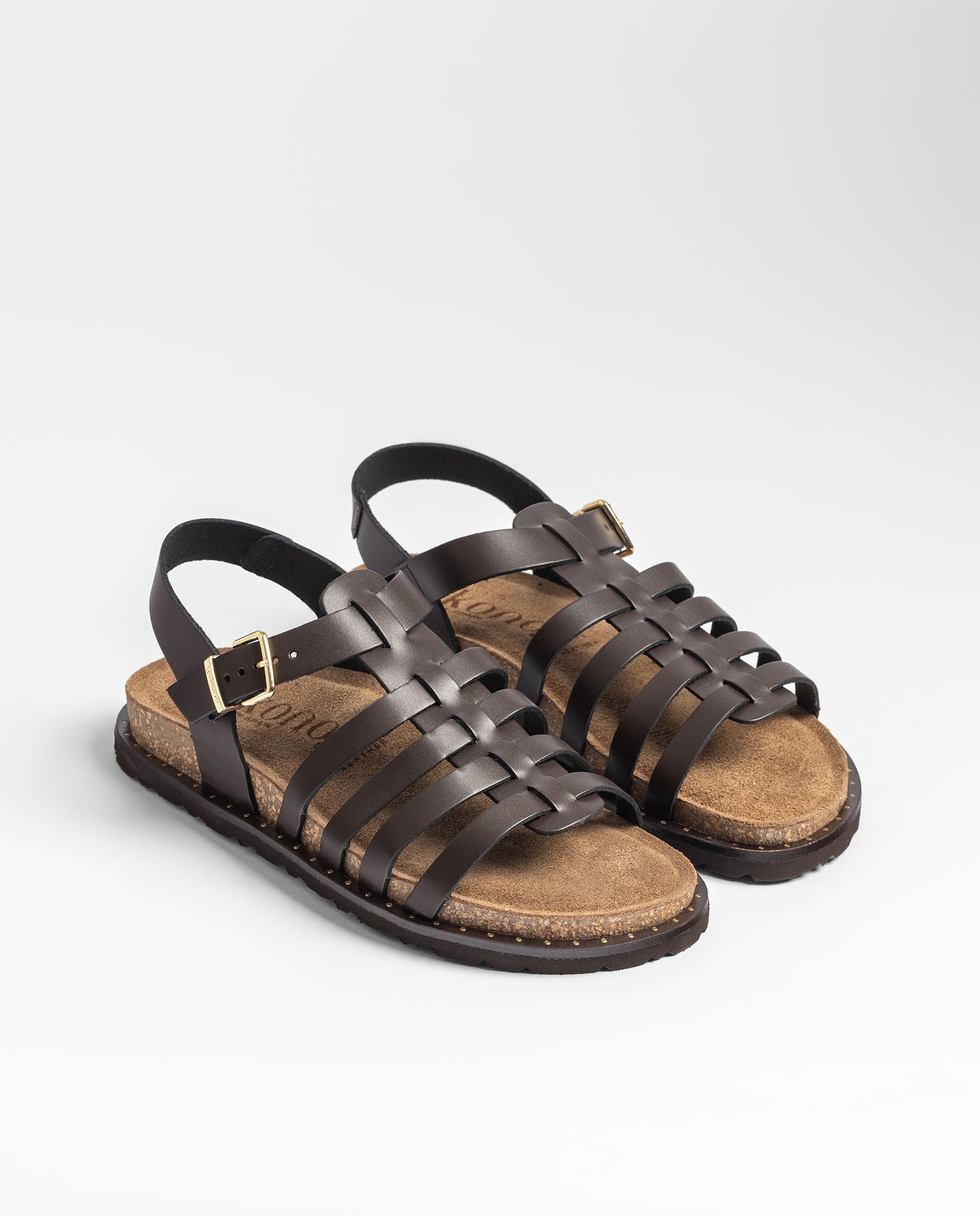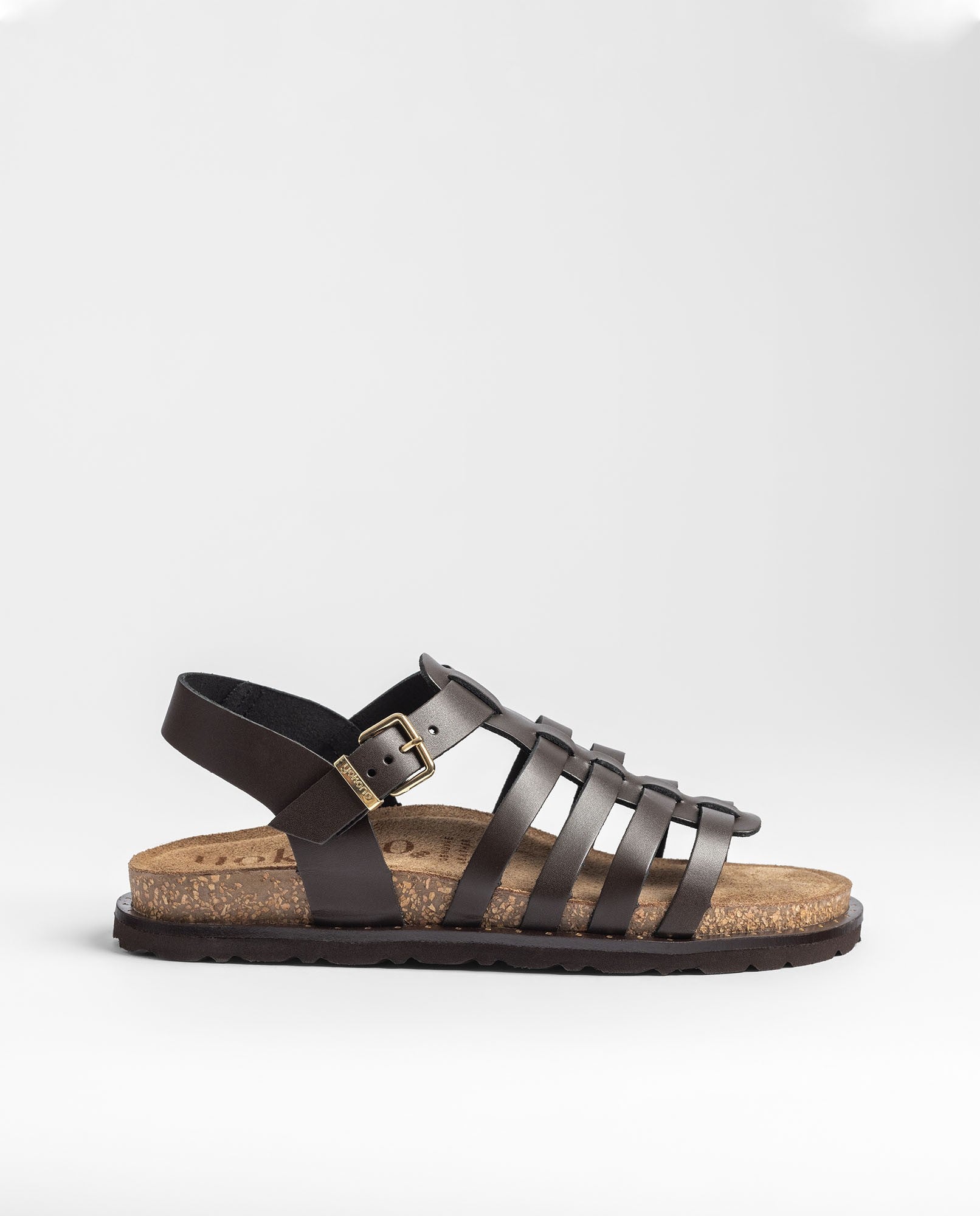 La sandalia plana BOLUS 107 en color marrón oscuro está elaborada en piel 100% vacuna y luce un diseño de tiras entrelazadas que aporta buena sujeción y un toque artesanal muy característico. Cuenta con plantilla anatómica y una suela ligera con corcho natural sostenible —con propiedades de regulación térmica—, lo que asegura una pisada fresca y confortable. Fabricada con proveedores nacionales, es una sandalia que combina calidad, estilo y funcionalidad para el día a día.