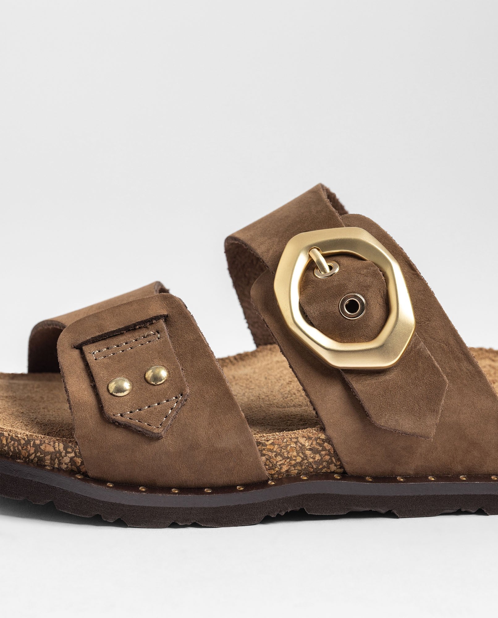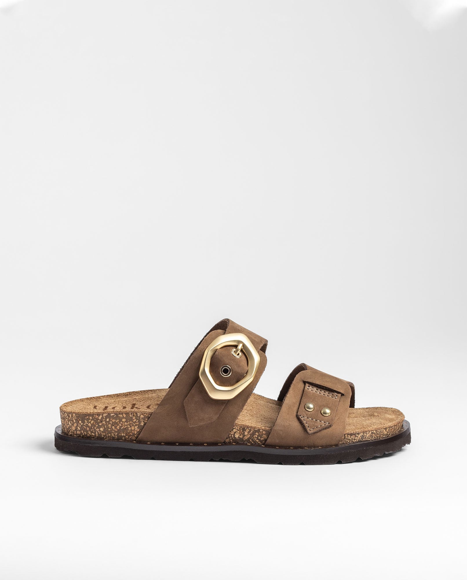 La sandalia plana BOLUS 254 en color marrón claro —un tono tendencia inspirado en el mocha mousse— está elaborada en piel 100% vacuna y cuenta con una doble tira ajustable con hebilla, que permite adaptar la sujeción de forma precisa y cómoda. Su plantilla anatómica se combina con una suela ligera de corcho natural sostenible, con capacidad de regulación térmica, para ofrecer un confort agradable durante toda la jornada. Fabricada con proveedores nacionales, es una opción versátil y de calidad pensada para acompañarte en tu día a día.