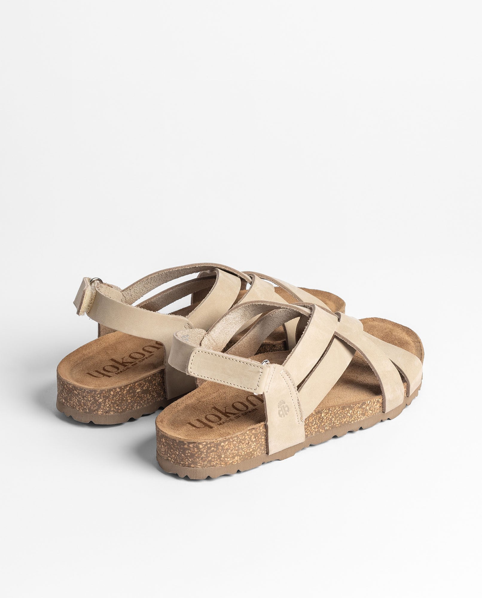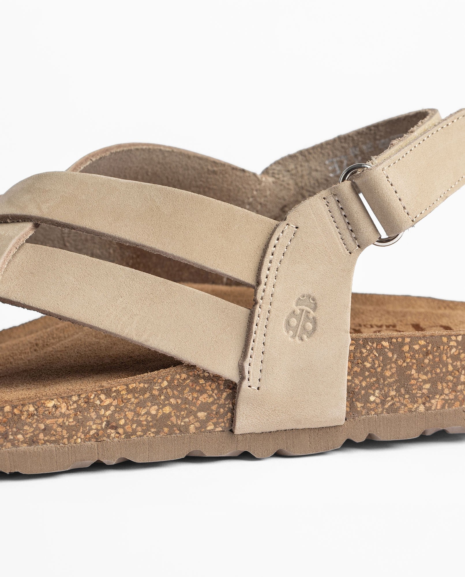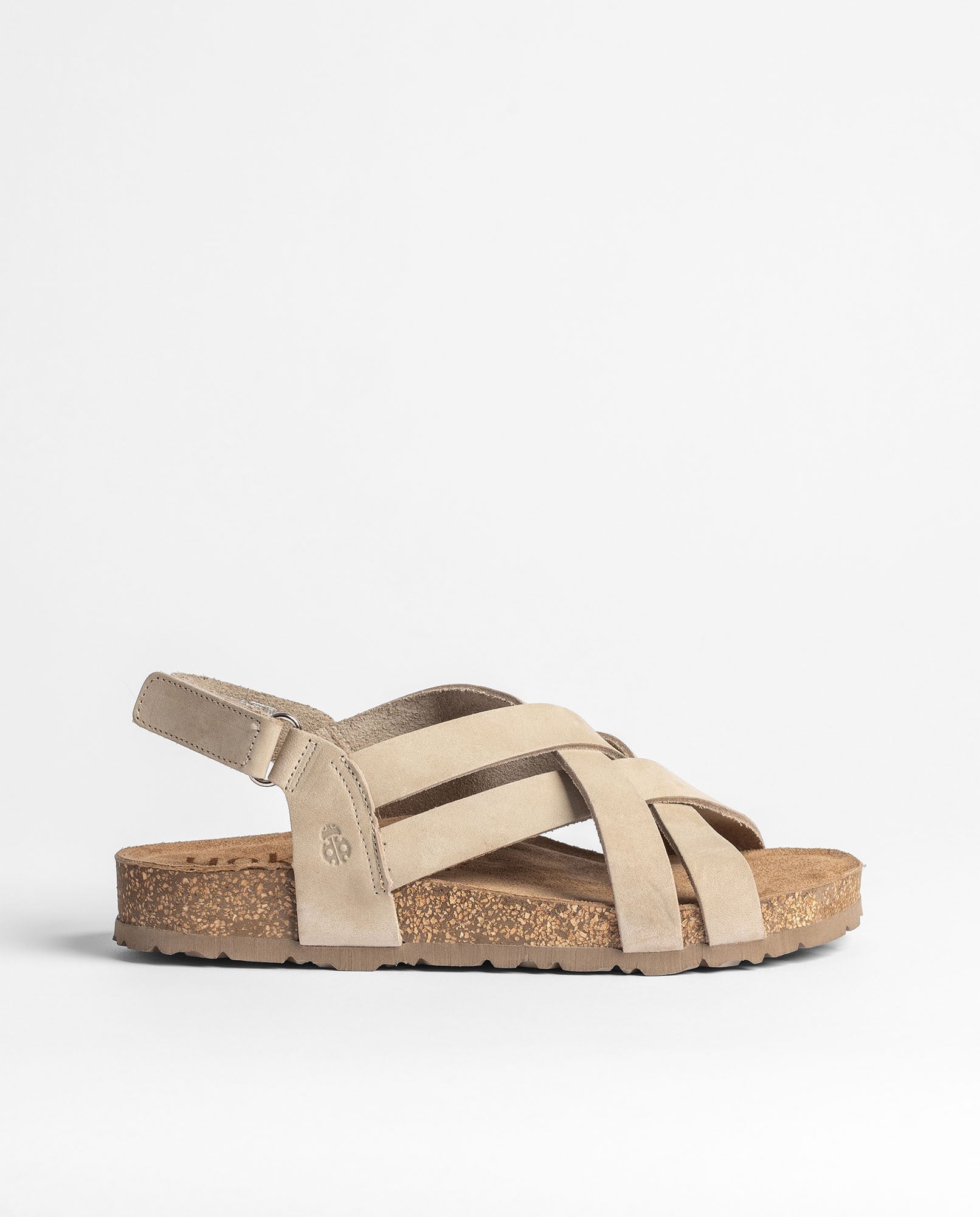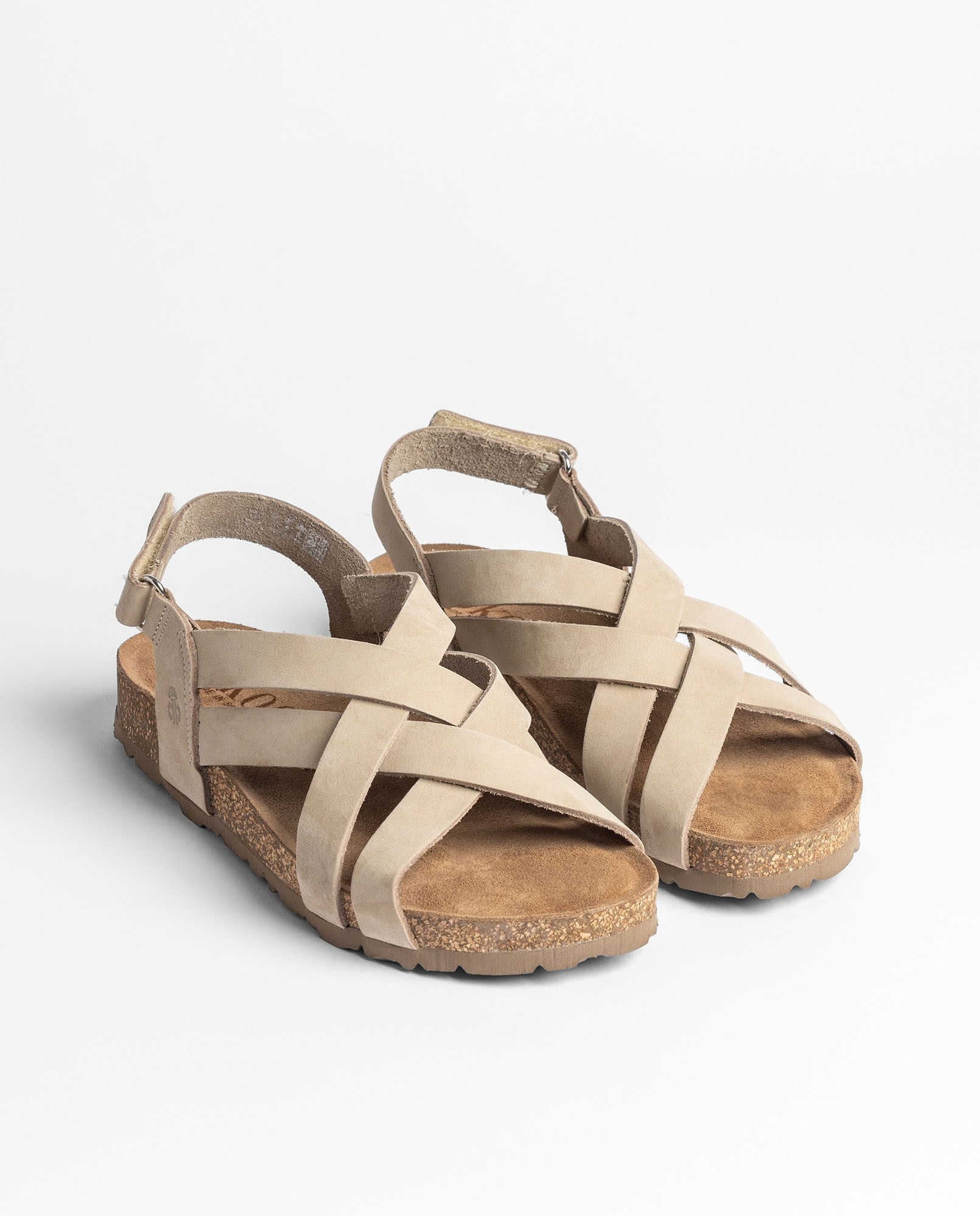 La sandalia plana JERBA 263 en color beige está elaborada en piel vacuna de alta calidad y apuesta por tiras entrelazadas con cierre de velcro, una combinación que permite ajustar la sujeción de forma sencilla y muy cómoda. Su plantilla anatómica ofrece una sensación agradable en cada paso, mientras que el piso de corcho natural sostenible, con propiedades de regulación térmica, ayuda a mantener el pie fresco. Fabricada con proveedores nacionales, es una sandalia ligera y práctica, pensada para acompañarte en el día a día con un toque cercano y funcional.