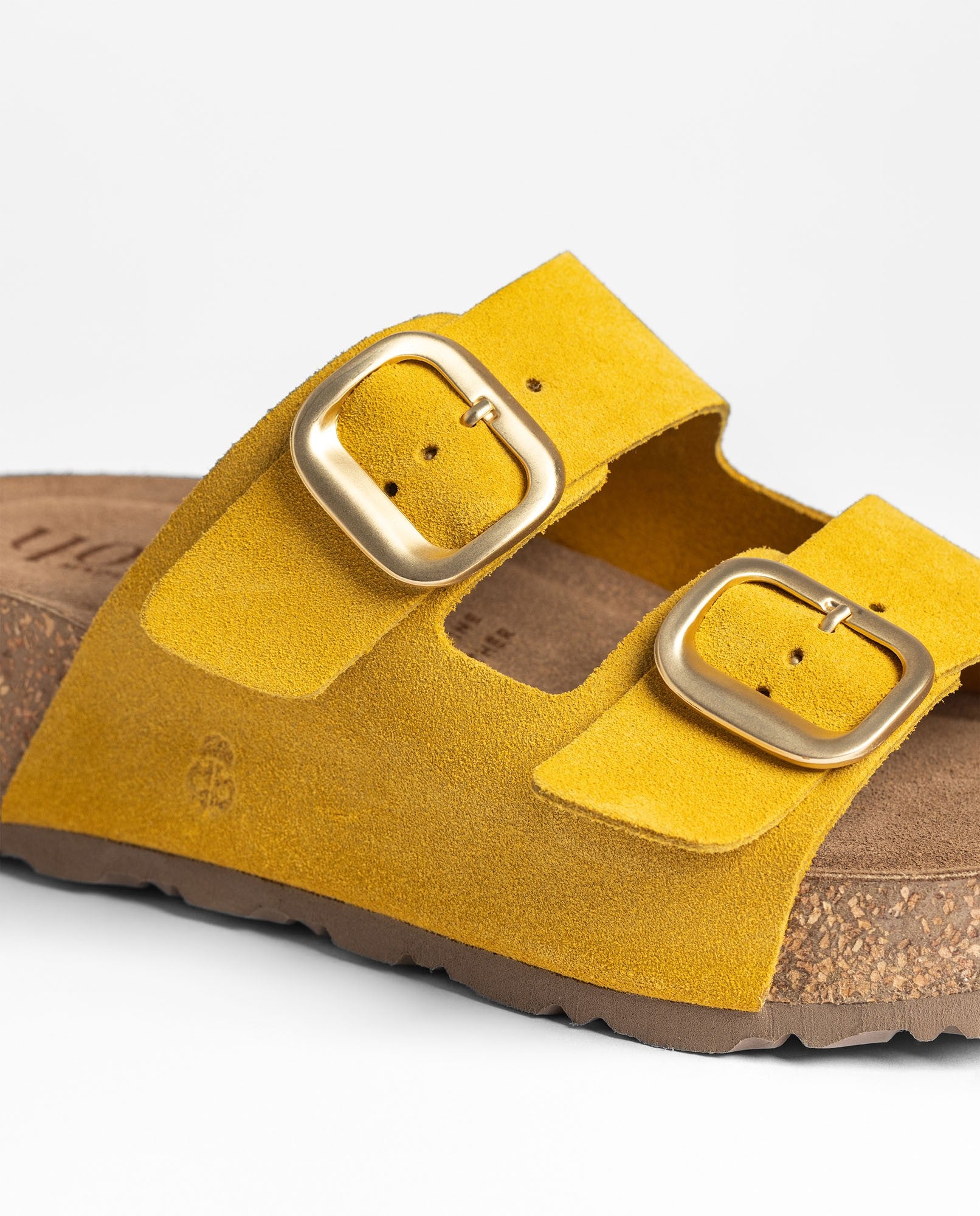 La sandalia de plataforma WIWI 003 en color amarillo combina piel vacuna con dos hebillas que permiten ajustar la sujeción y le aportan un toque de personalidad. Lleva plantilla anatómica y una plataforma de corcho sostenible —un material que ayuda a mantener el pie a una temperatura agradable— para ofrecer una sensación de bienestar en cada paso. Fabricada junto a proveedores nacionales, es una sandalia ligera, moderna y muy fácil de llevar en el día a día.
