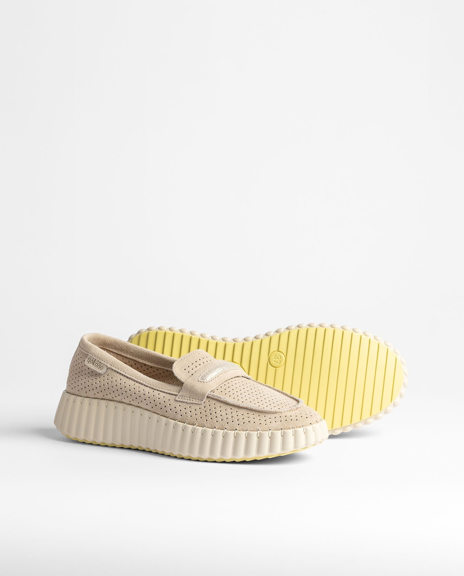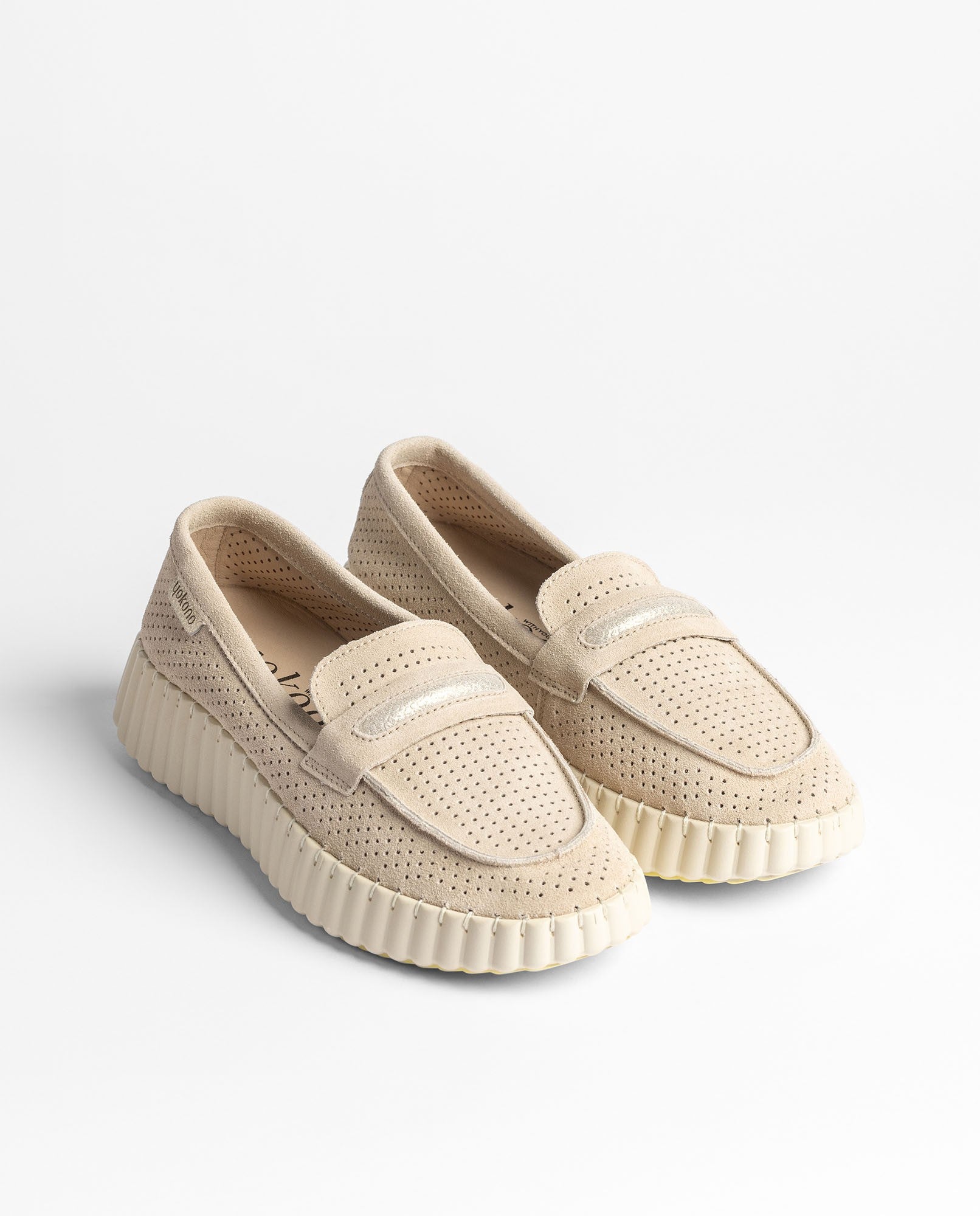 La sneaker VANNA 101 en color dorado combina la comodidad de una zapatilla con la elegancia sencilla de un mocasín clásico, creando un modelo versátil que encaja tanto con looks casuales como con conjuntos más arreglados. Está hecha en piel natural perforada, lo que aporta transpirabilidad y un estilo ligero y fresco. Su suela dentada ultraligera ofrece estabilidad sin añadir peso, y la plantilla extraíble, acolchada y suave, garantiza confort durante todo el día y permite mantener el interior siempre limpio y cuidado.